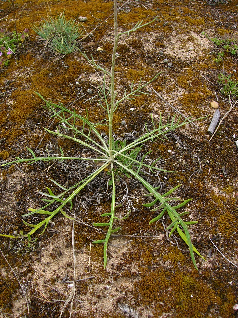 Grundblätter rosettig, fiederteilig, mit linealischen Abschnitten
