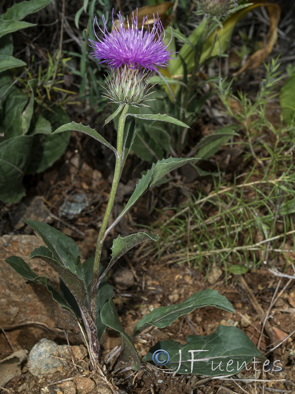Köpfchen einzeln, 20 - 25 mm lang, Röhrenblüten violett, 20 - 30 mm lang