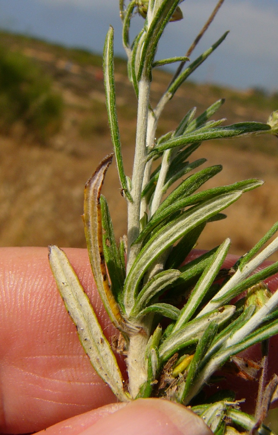 Phagnalon - Köpfchen einzeln, Blätter unterseits dicht filzig behaart, Hüllblätter spitz