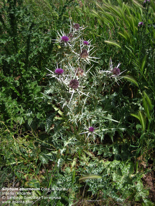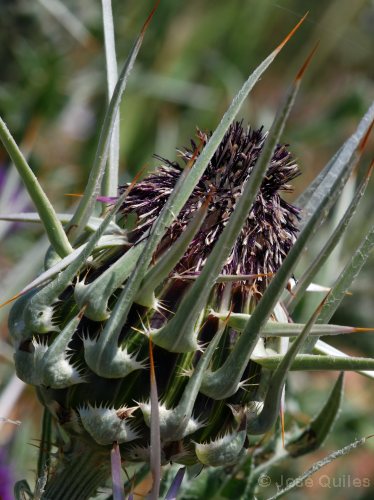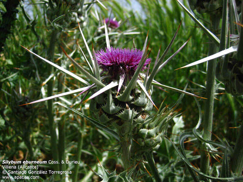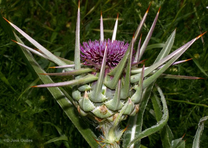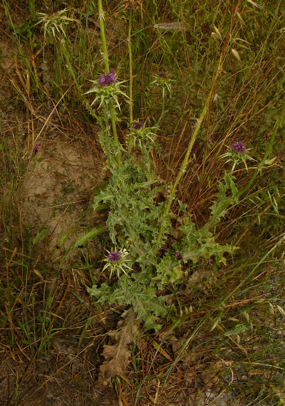 | Stängel weißfilzig Köpfchen 4 - 6 cm im Durchmesser mit langen, geraden Hüllblättern Äußere Hüllblätter ohne Dorn Verbreitung: Spanien, Nordafrika > 1