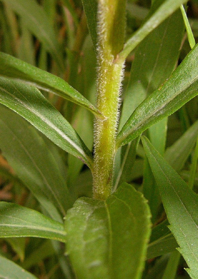 kurz, oft eingerollt Stängel grün, oben kurzhaarig, Blätter unterseits auf den Adern behaart, Zwischenräume zwischen den Blattadern nach oben hervorgewölbt, > 2