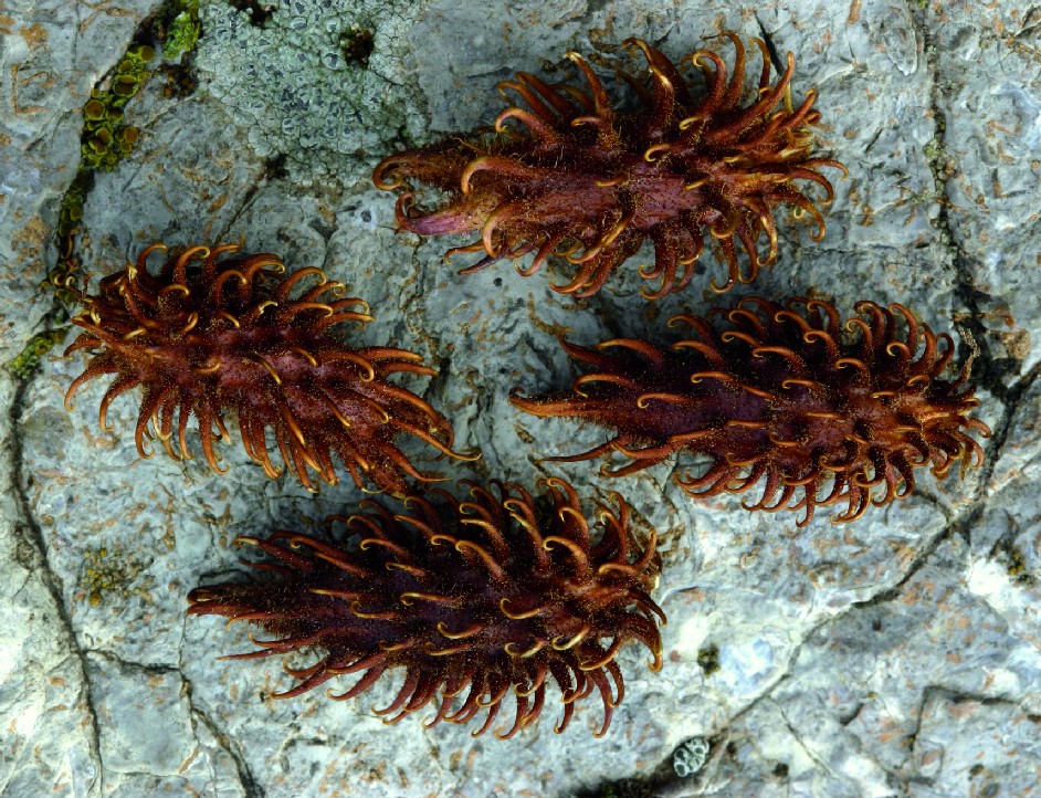 Hülldornen locker stehend (Abstand 2 - 3 mm), Fruchtkörbe stark drüsig Schnäbel und Hülldornen stark eingebogen > 1