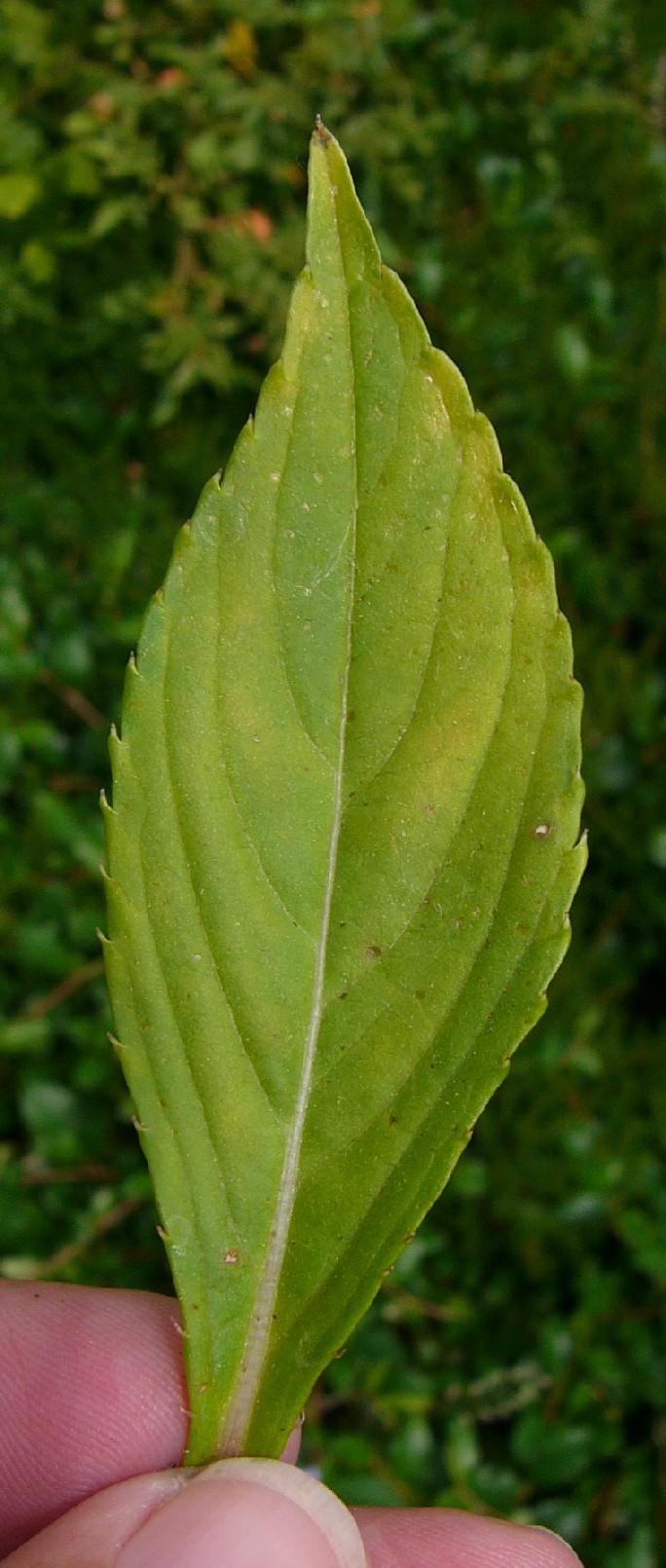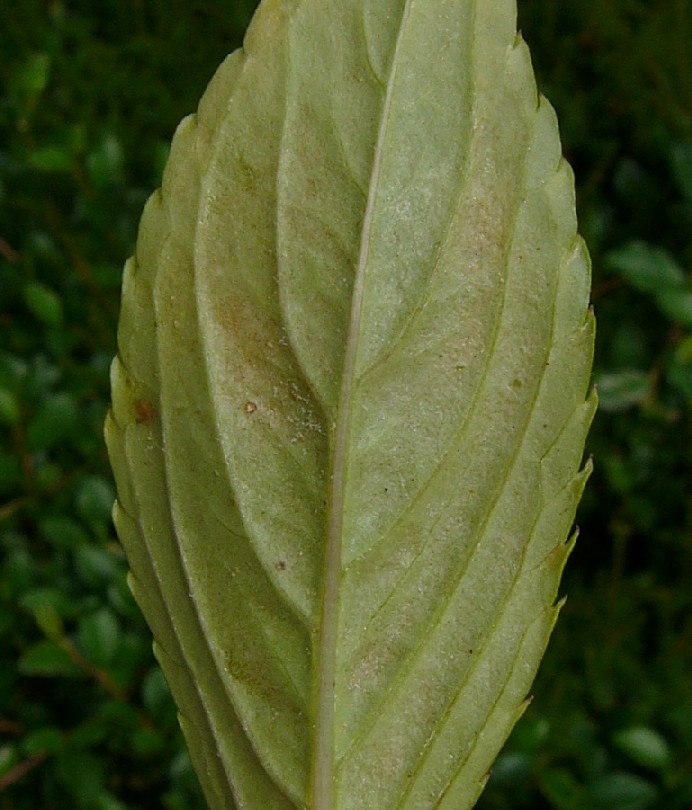 Blätter lanzettlich, 3 - 9 cm lang, 1 - 2,5 cm breit, am Rand gezähnt