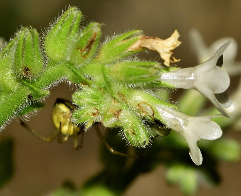 Blüten, Kelch ca. zur Hälfte geteilt, angedrückt behaart Blätter ohne weißliche Warzen > 2