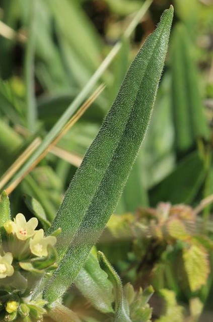 Blätter mit +/- langen Borsten, die teilweise auf Tuberkeln sitzen Grundblätter rosettig, 50 - 90 mm lang, 7 - 12 mm breit