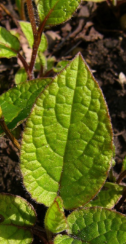 Blätter eiförmig bis lanzettlich, schwach gekerbt, oft gewellt