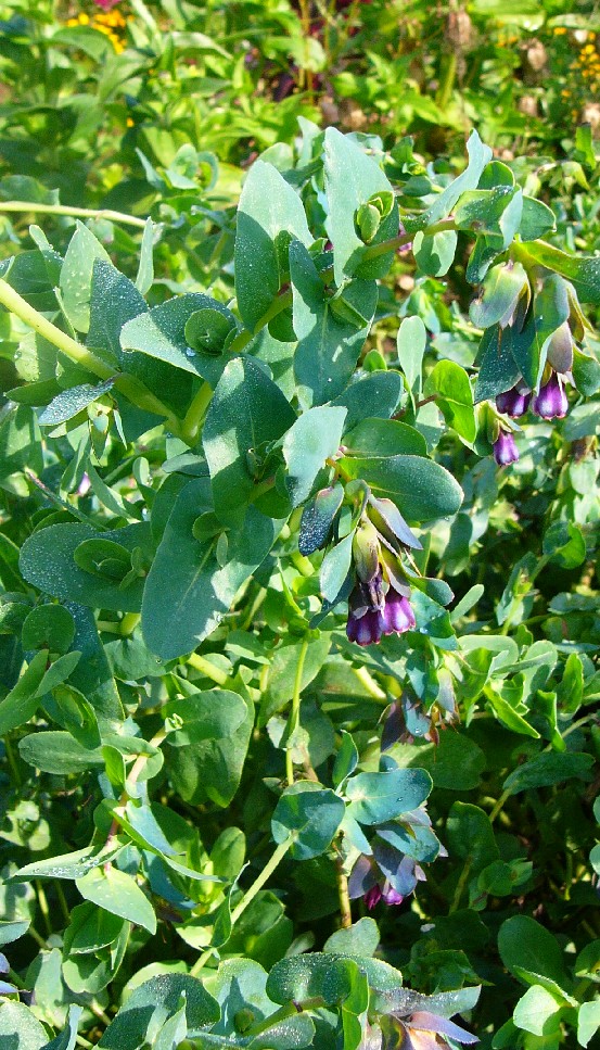 Zierpflanze (0 - 800 m) Synonyme: English name: Verbreitung in Deutschland: Gefährdung in Deutschland: Weltweite Verbreitung: Cerinthe major ssp major hat gelbe oder gelb/rote Blüten. Etymologie: Häufigste Züchtung: 'Purpurascens': oft mit violetten Hochblättern