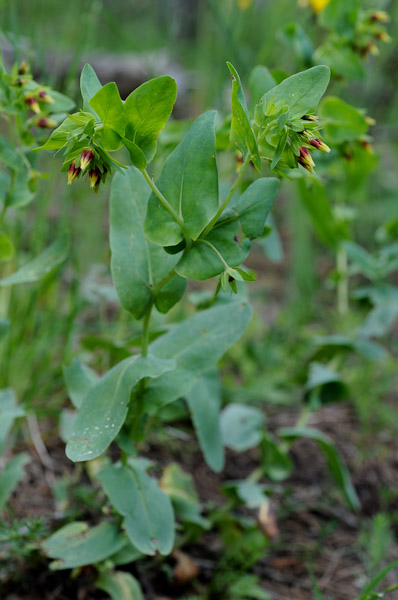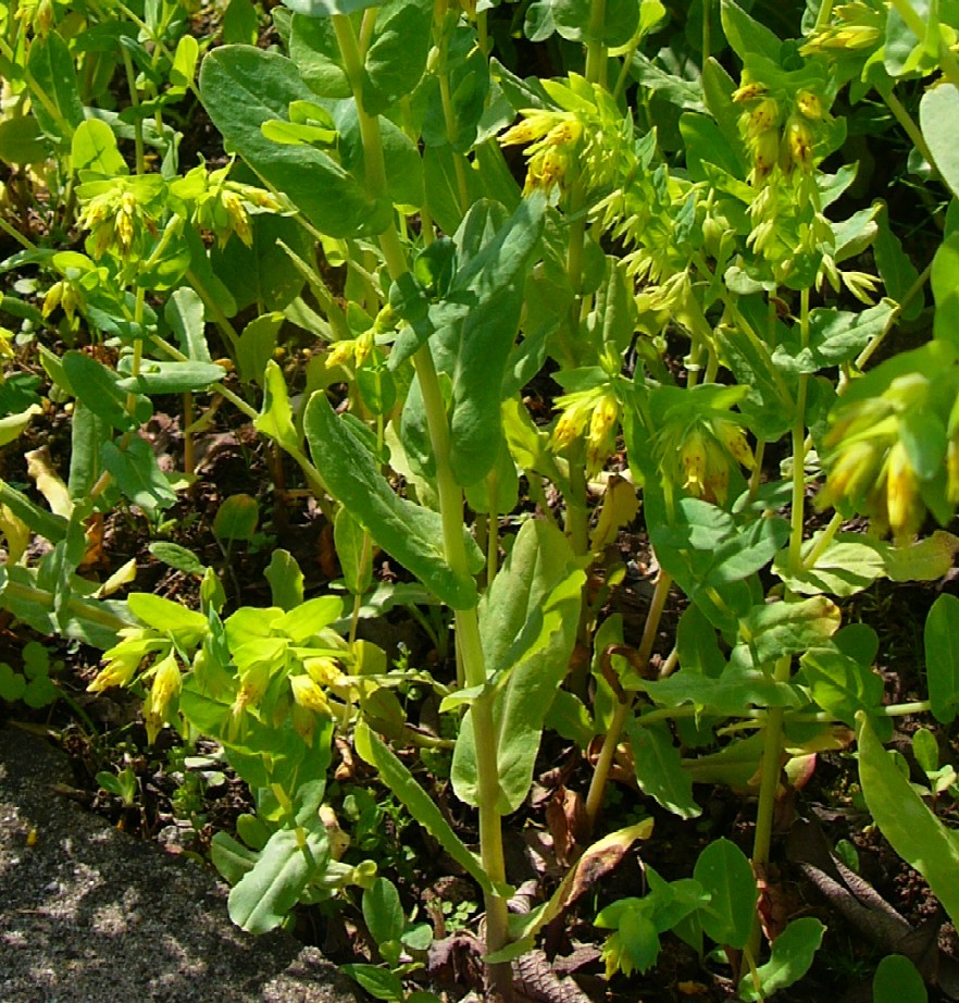 Krone 7 - 10 mm, mit oder ohne rotes Band Untere Stängelblätter halbstängelumfassend, 4 - 5 cm lang, 2 - 3,5 cm breit Rosettenblätter zur Blütezeit meist verwelkt > 2 |