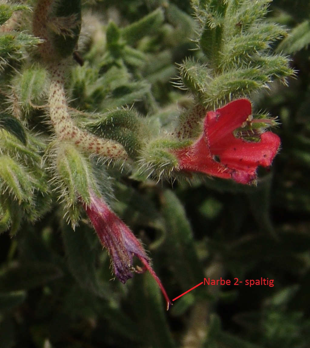 Pflanze 25 - 40 cm groß Krone 16 - 22 mm, außen gleichmäßig behaart, zur Blütezeit rot