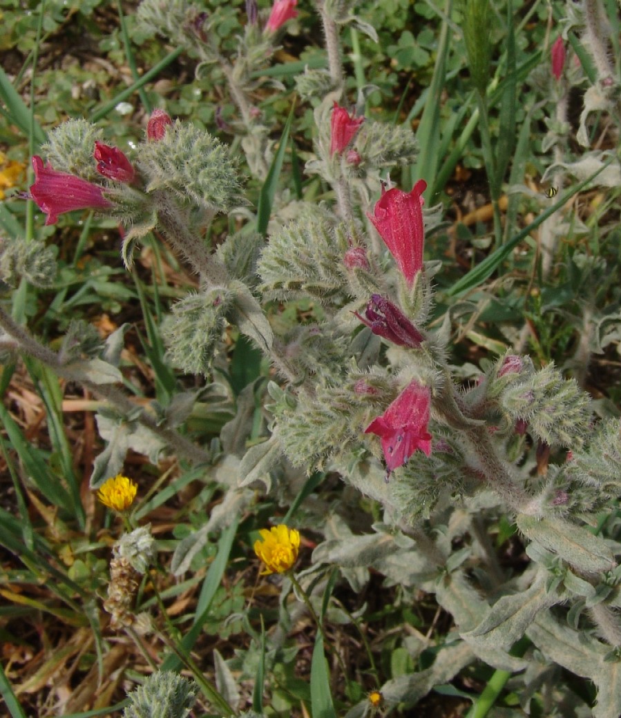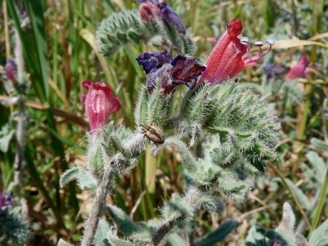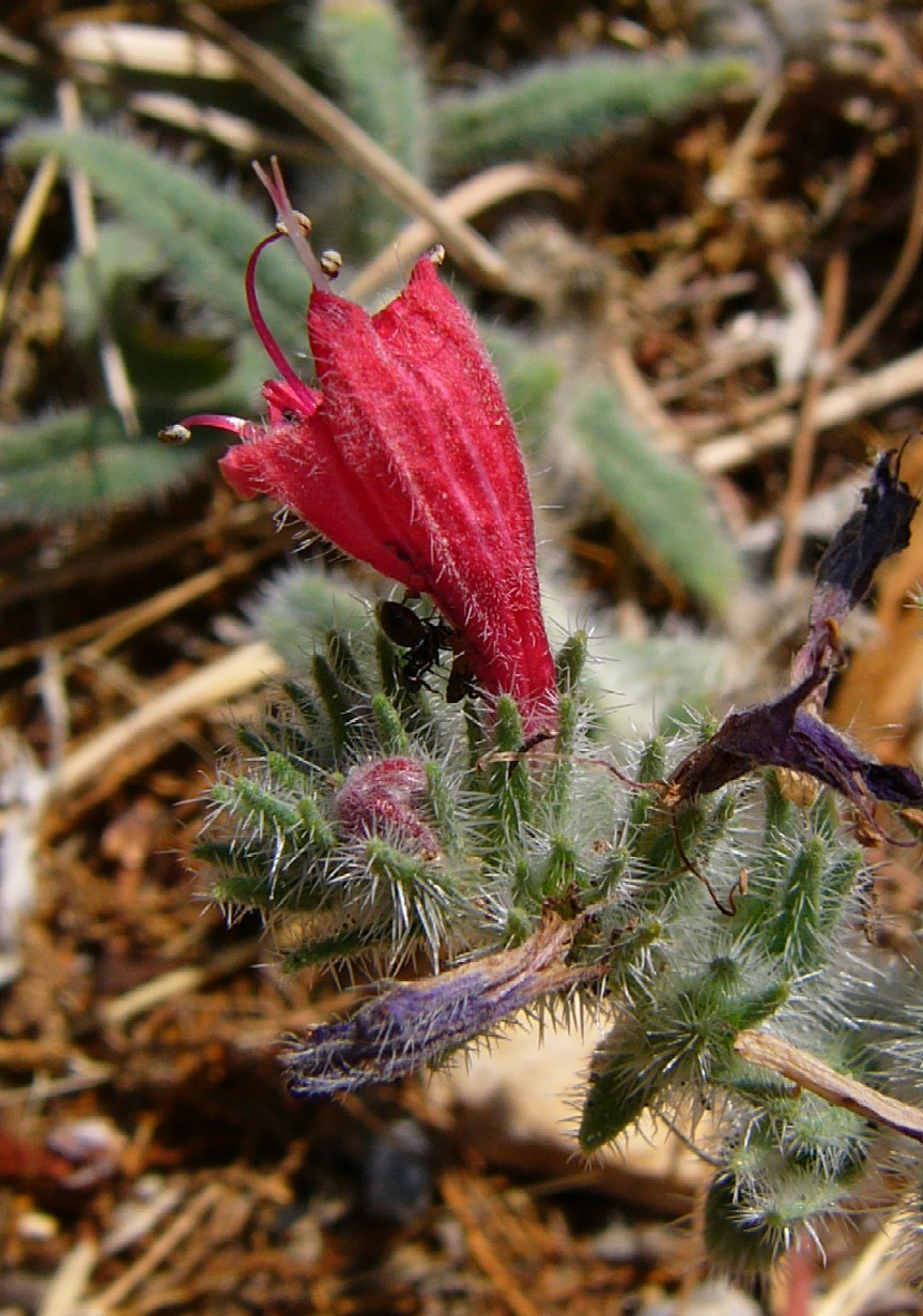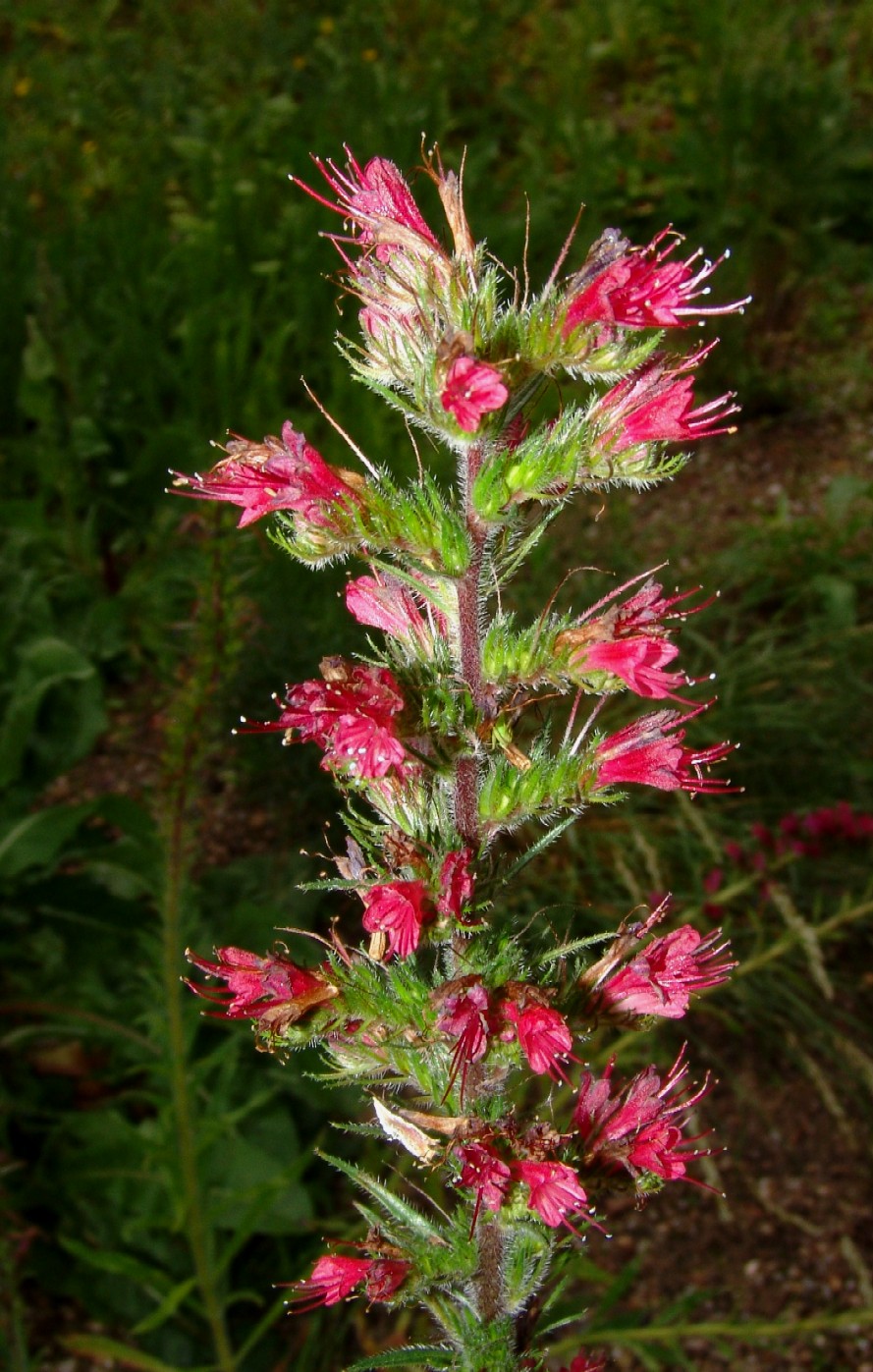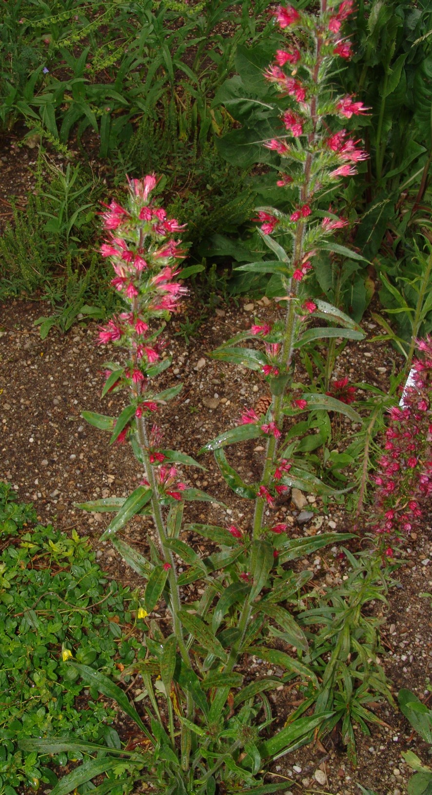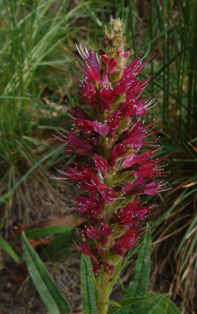 Echium - Blüten intensiv rot, 3 - 5 Staubblätter ragen aus der Krone