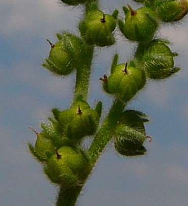 Kelch bis zum Grund geteilt, Kelchzähne lanzettlich am Grund breit, bald nach der Blüte abstehend, die Spitzen oft nach innen gerollt Frucht dicht langhaarig