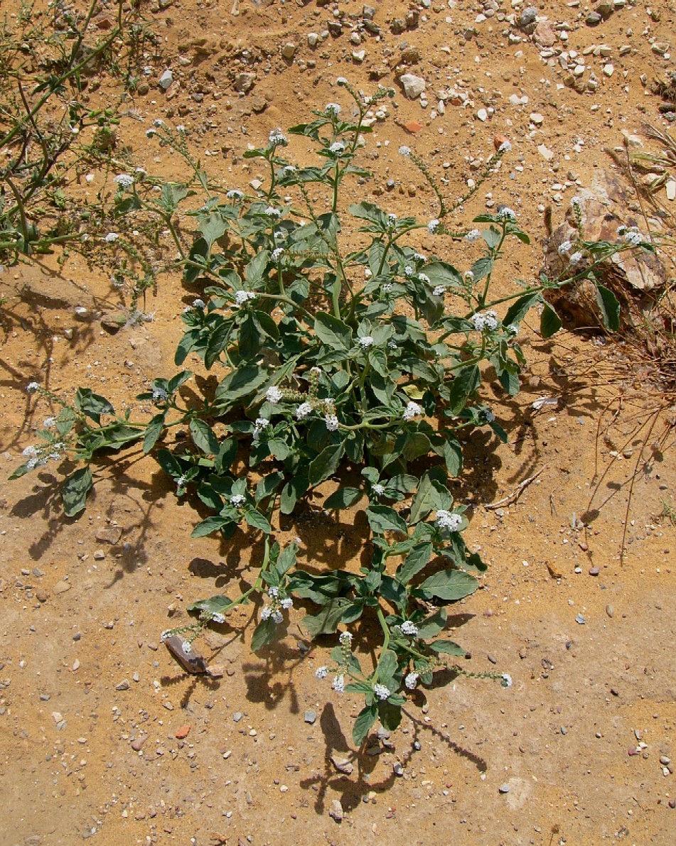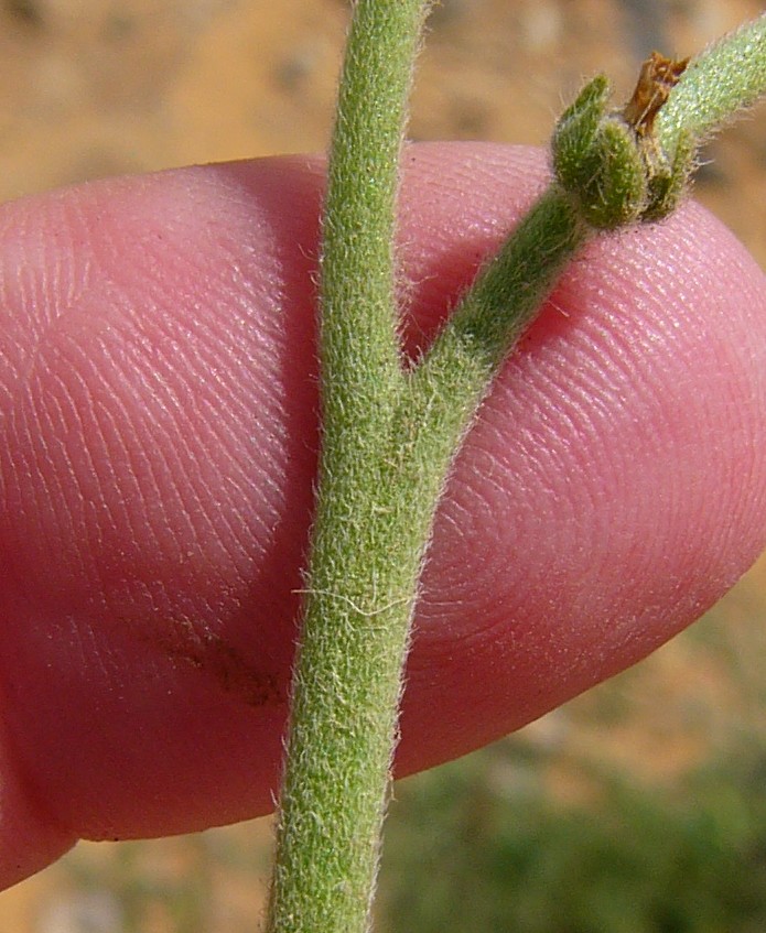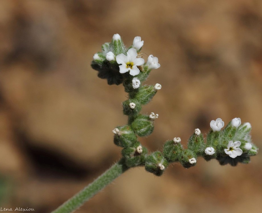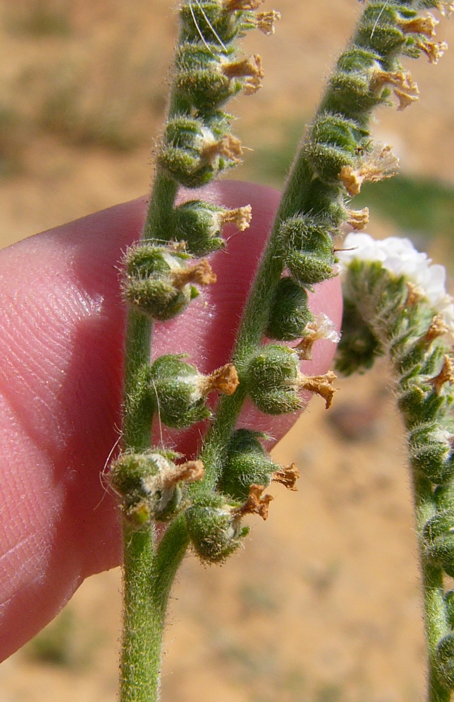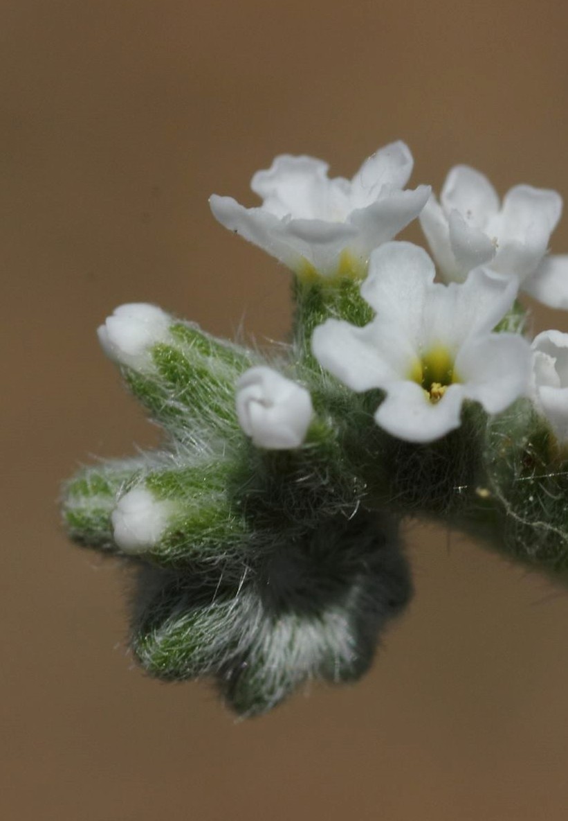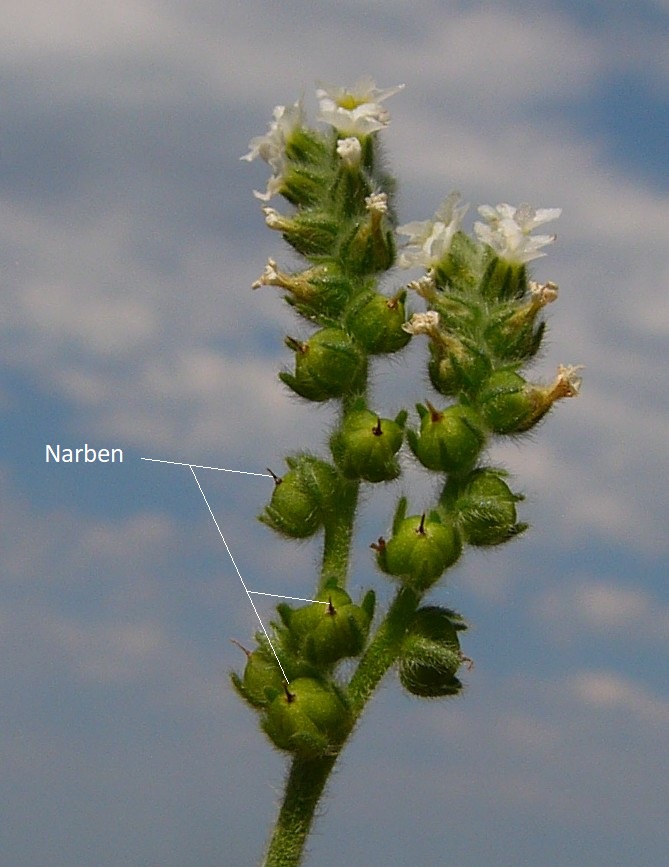 Pflanze 15 - 30 cm groß Blüten in einfachen oder gegabelten Wickeln Krone 2 - 4 mm im Durchmesser, weiß, mit gelbem Schlund, ohne Schlundschuppen Staubblätter setzen in der Mitte der Kronröhre an Kelch bis zum Grund geteilt, mit langen zottigen, abstehenden Haaren, bald nach der Blüte abstehend, Kelchzähne 0,4 - 0,8 mm breit Narbe lang ausgezogen, fadenförmig Frucht runzlig, kahl