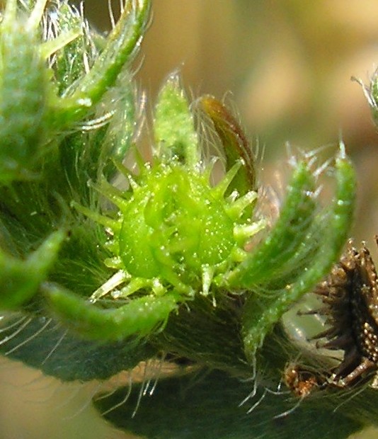 Teilfrüchte mit 1 Reihe widerhakiger Stacheln d.h. pro Frucht nur 4