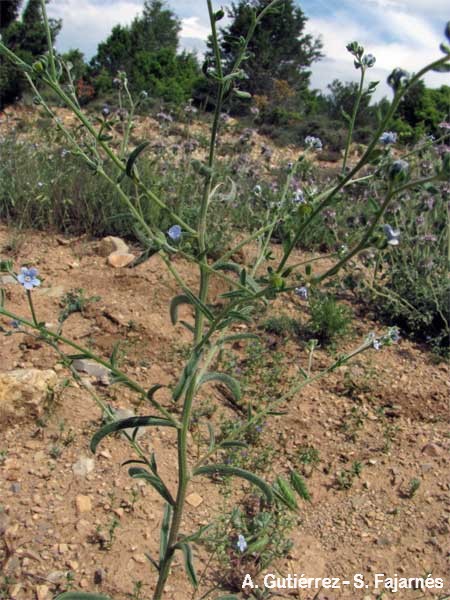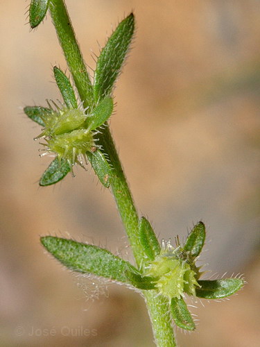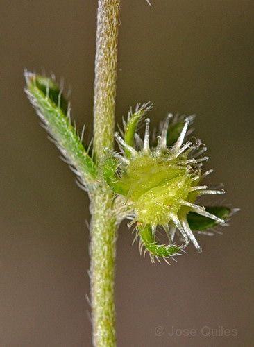 Spanien und Albanien Untere Blätter grauhaarig, bis 4 cm lang und 0,4 cm breit Stängel nur mit angedrückten Haaren Blüten 5 - 8 mm im Durchmesser Früchte mit deutlichen Warzen zwischen den Stacheln > 6