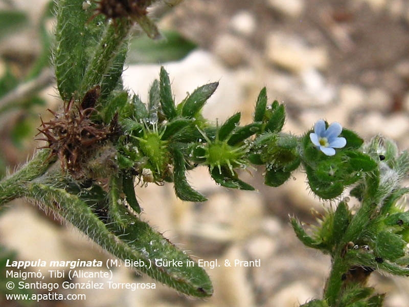 Teilfrüchte mit 2 Reihen widerhakiger Stacheln, die am Grund weder abgeflacht noch verbreitert sind, zwischen den Stacheln befinden sich deutlich ausgeprägte Warzen