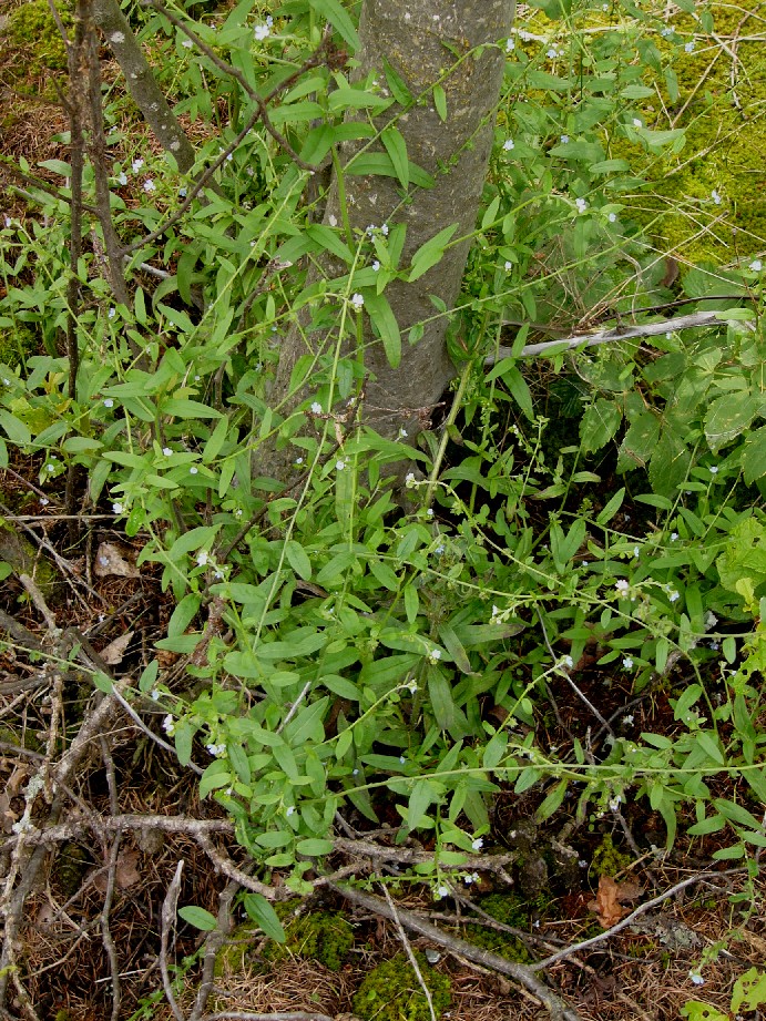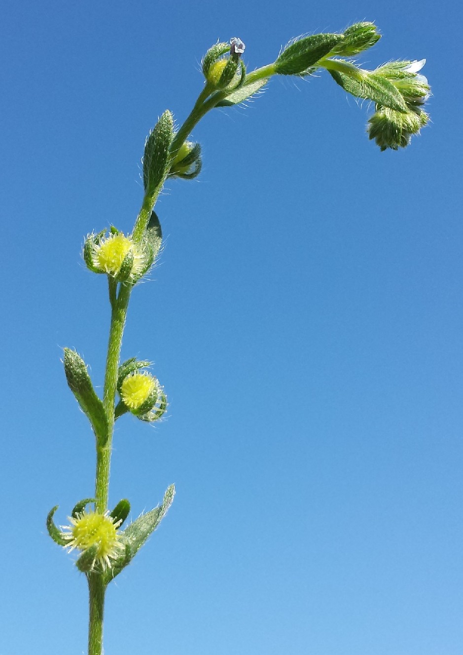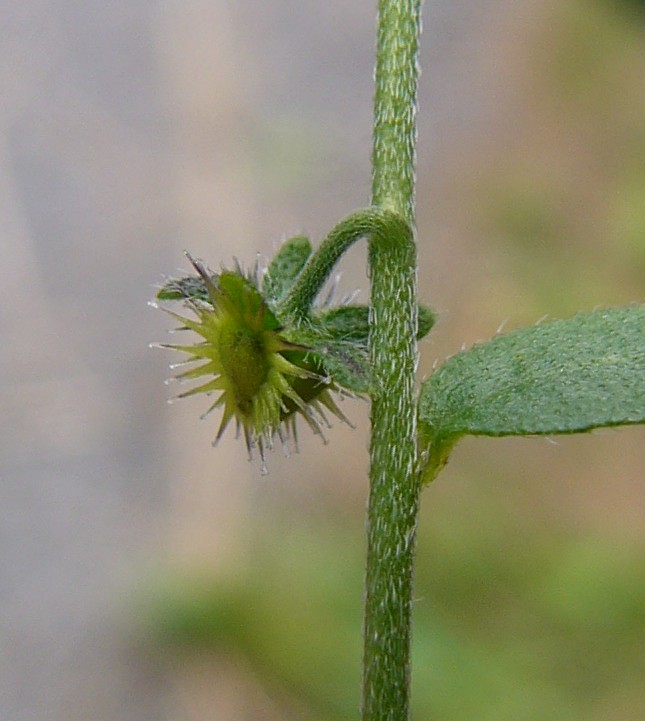Gebiet Untere Blätter grün, bis 14 cm lang, 1,2 cm breit, Stängel mit angedrückten und abstehenden Haaren Blüten 2 - 4 mm im Durchmesser, Früchte ohne oder mit undeutlichen Warzen zwischen den Stacheln > 5