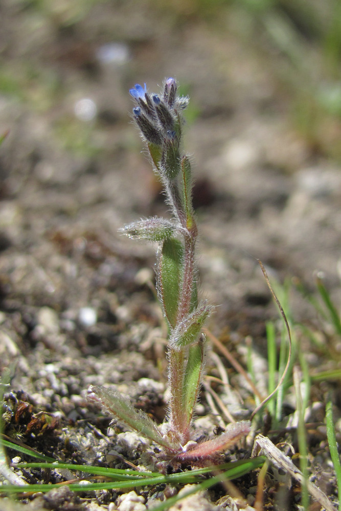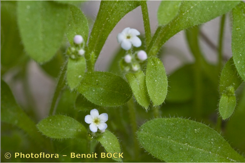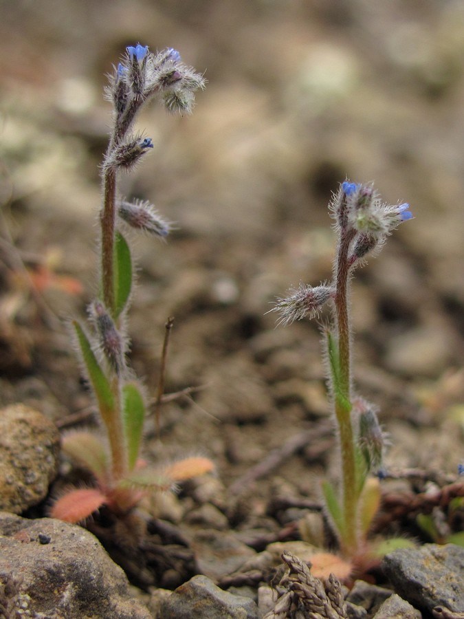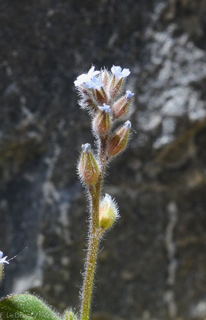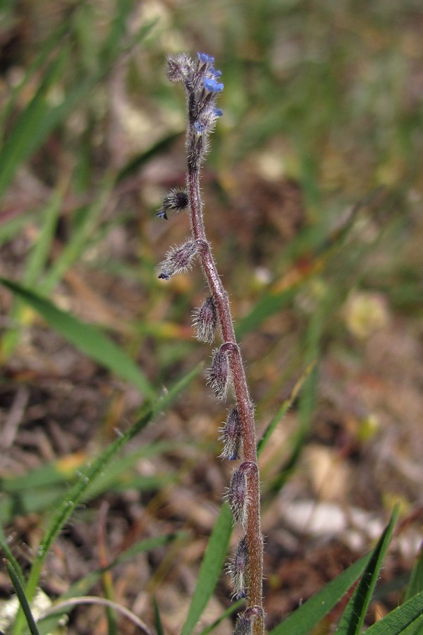 Myosotis - Blüten blau, klein, +/- trichterförmig, Kelch mit Hakenhaaren, Blütenstandsachse abstehend behaart