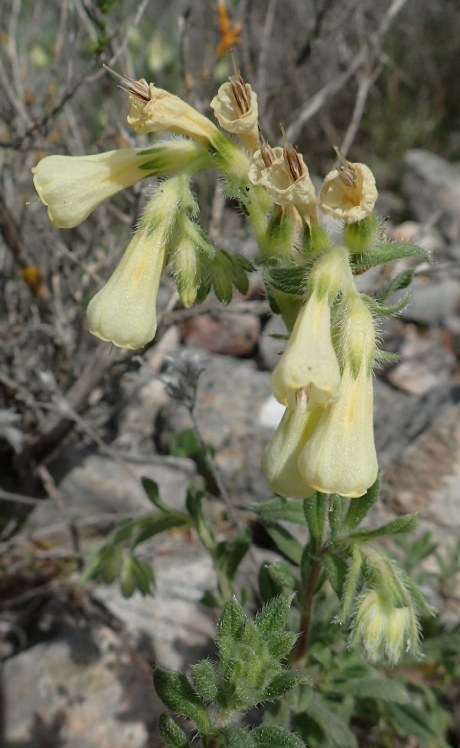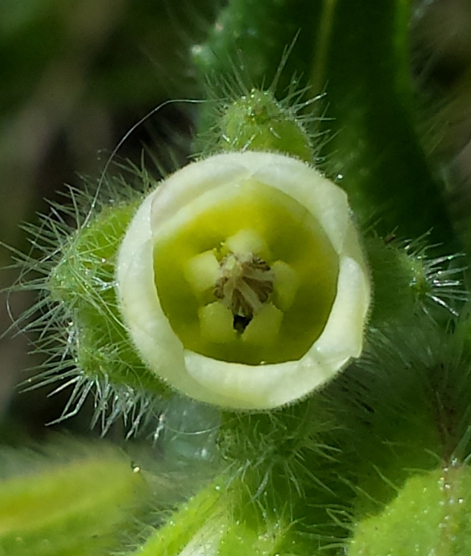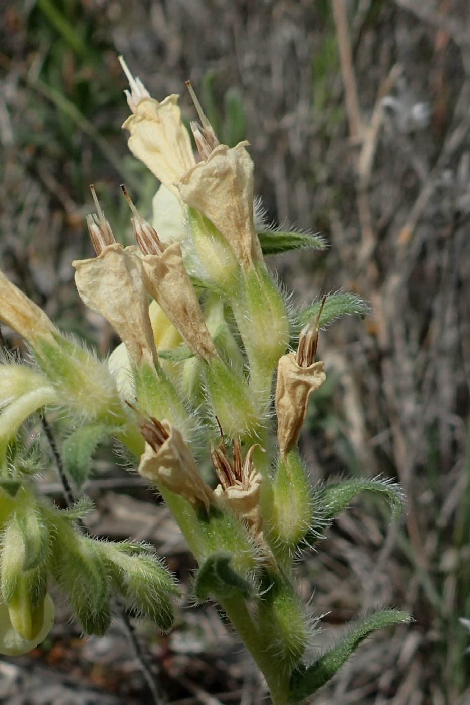 Blüten cremeweiß, 17 - 20 mm lang, +/- behaart