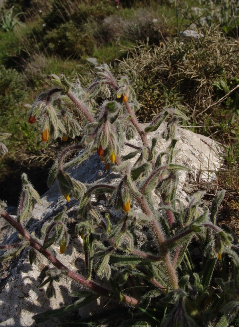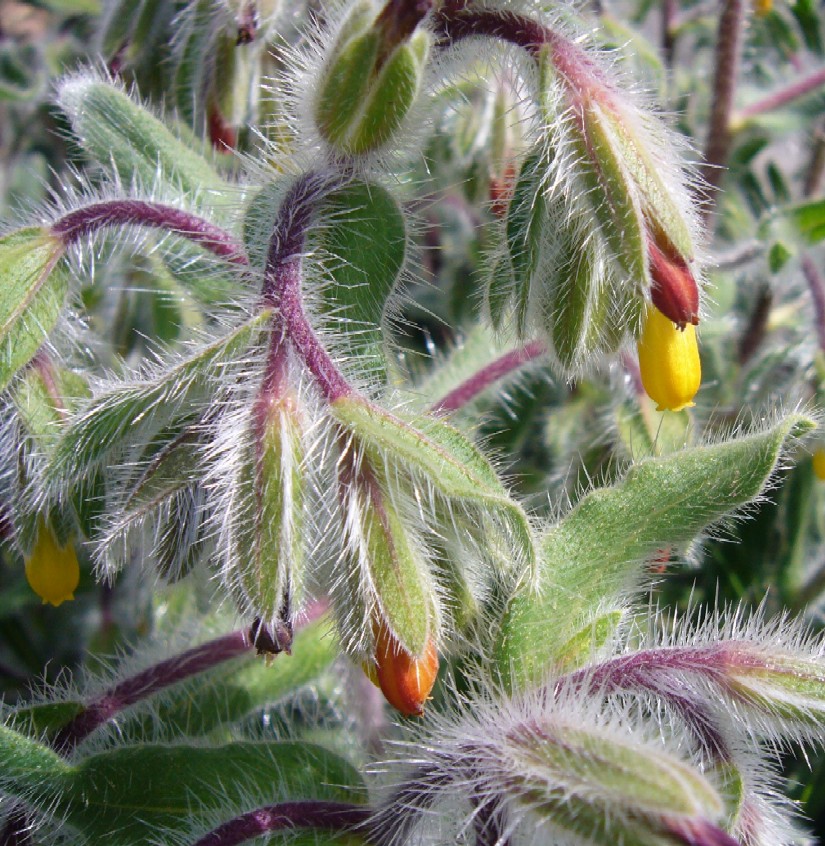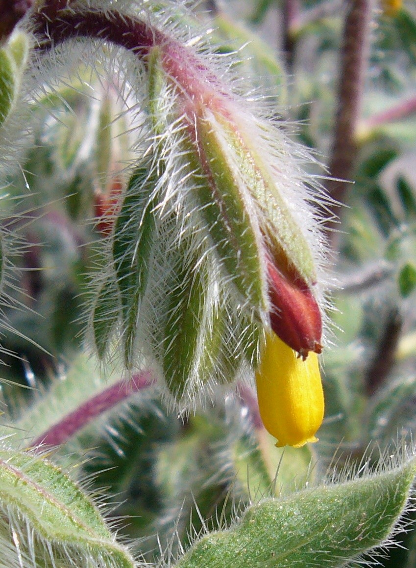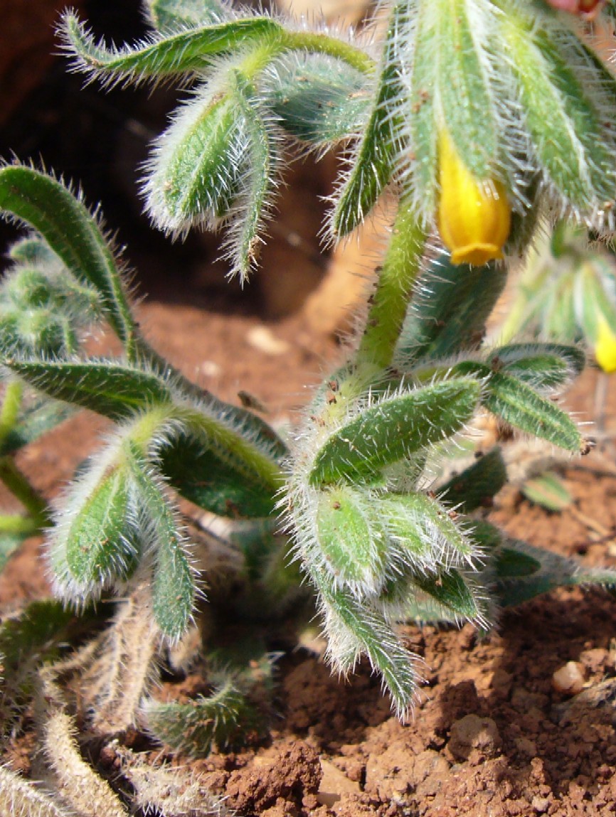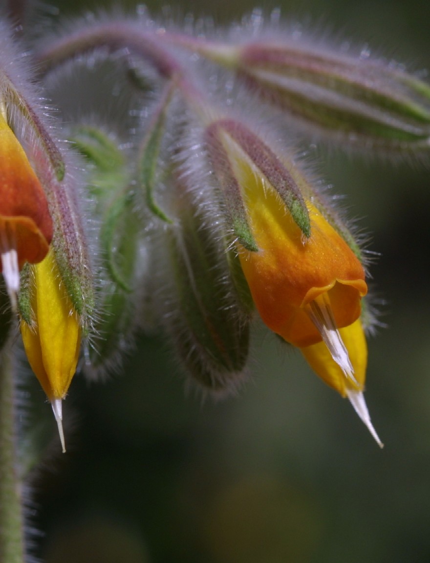 Blüten orange werdend, Blätter am Grund der Borsten ohne sternförmige Börstchen