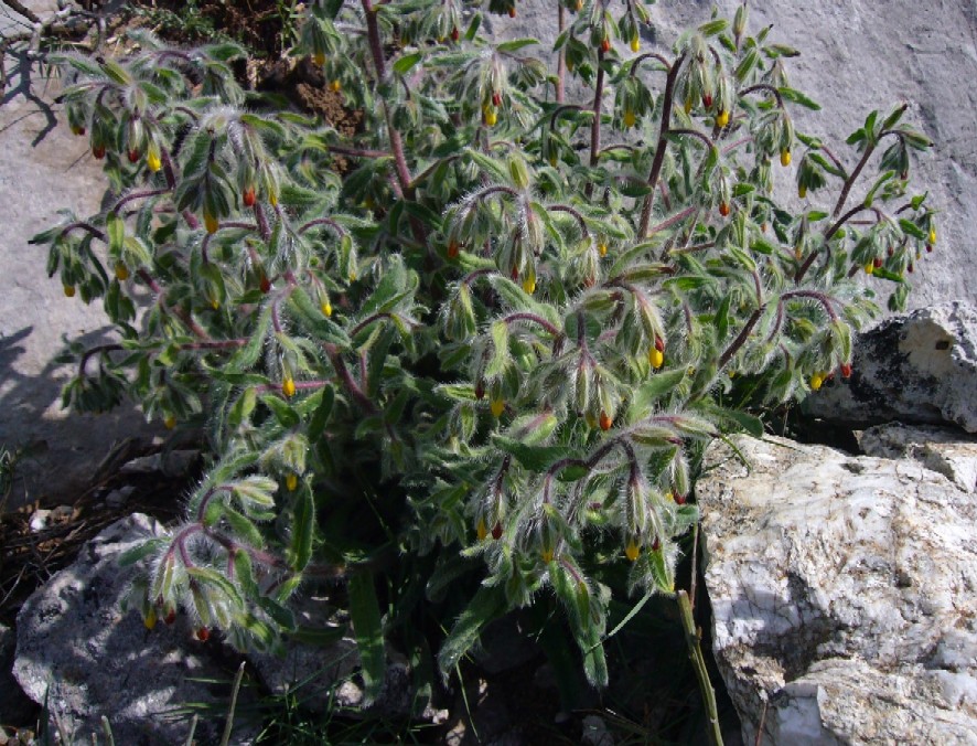 Nüsschen warzig Blütentragende Stängel entspringen der Blattrosette des Vorjahres Blüten 14 - 18 mm lang, Antheren kürzer als die Kronröhre > 4