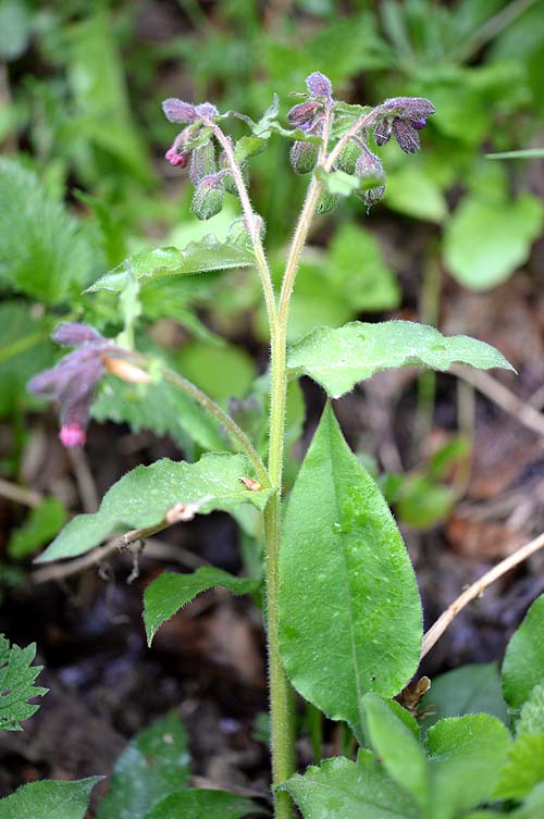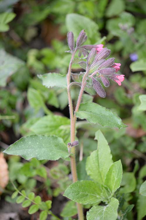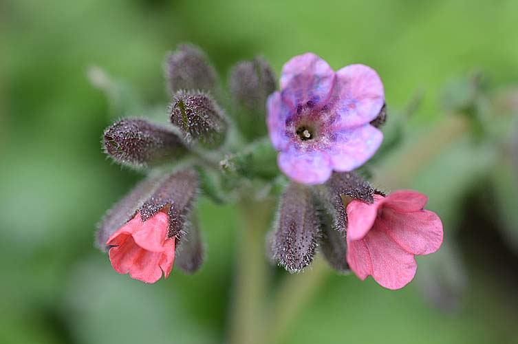 Pulmonaria - Kronblätter zur Blütezeit violett, blau oder rosa, Grundblätter am Grund +/- keilig