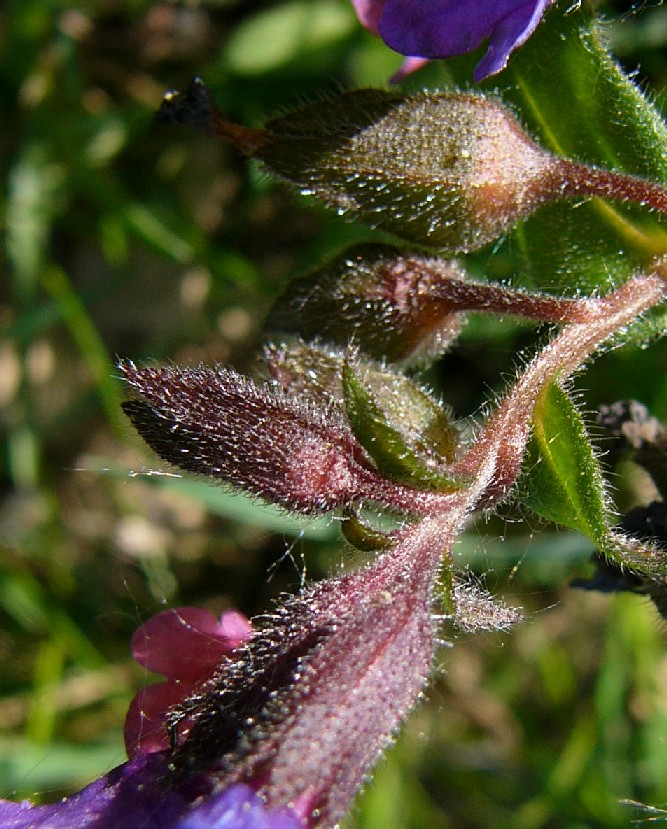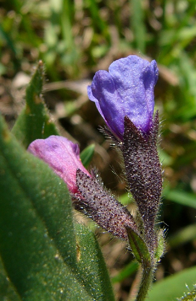 Blüten anfangs rot, später blau oder violett