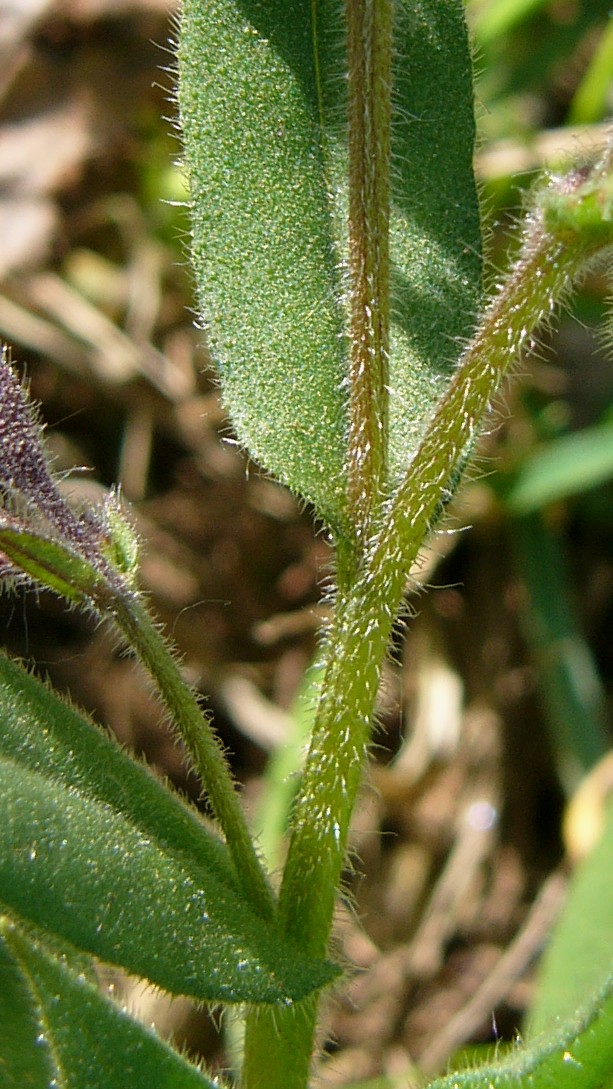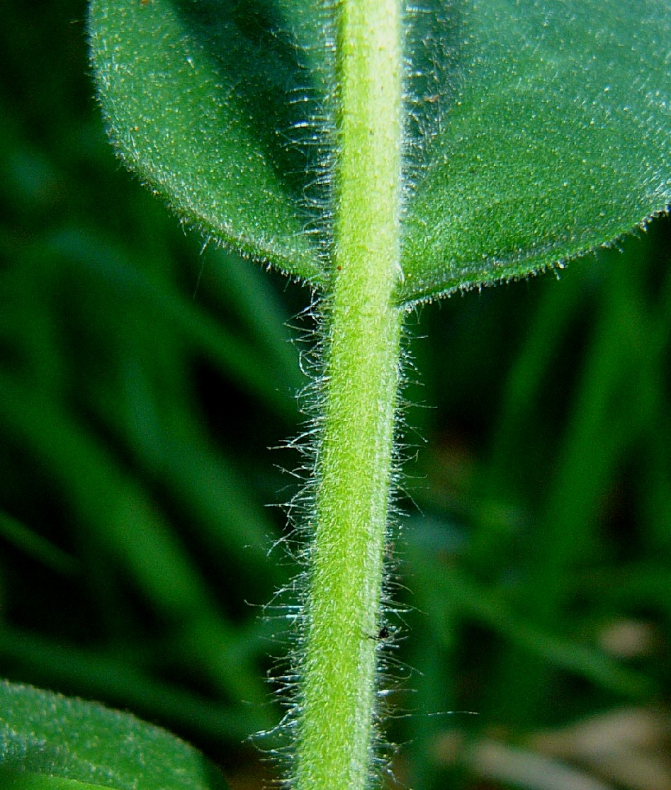 4 Stängel mit Borsten und wenigen Drüsenhaaren, Grundblätter 5 - 6 mal so lang wie breit