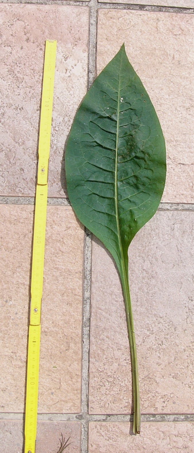 Grundblätter 4 - 6 mal so lang wie breit, länglich- lanzettlich, nach beiden Enden allmählich verschmälert