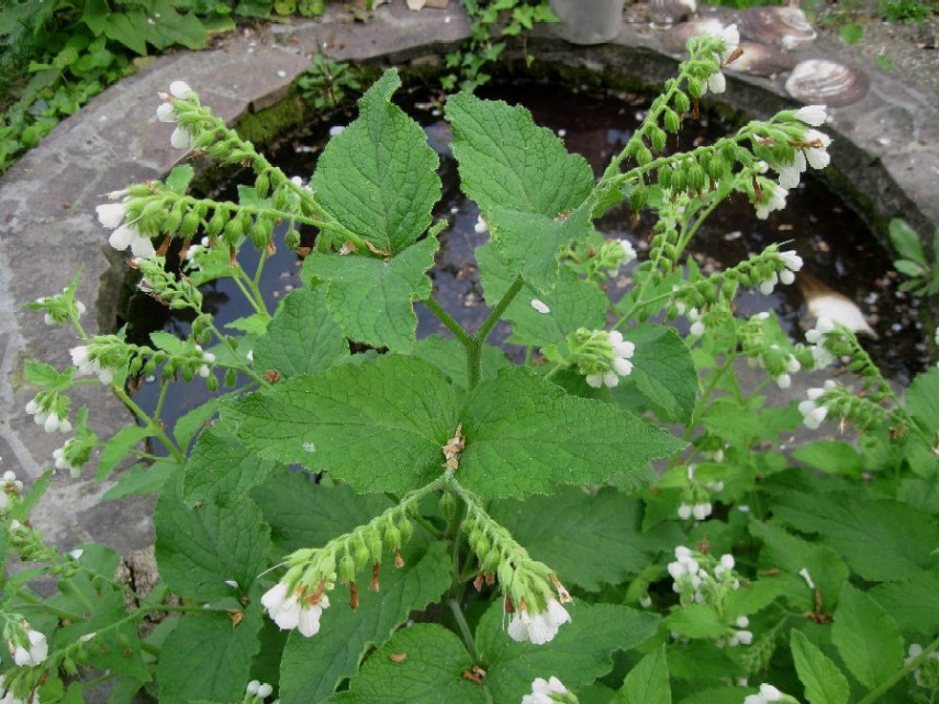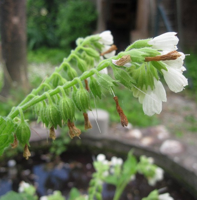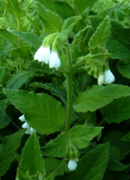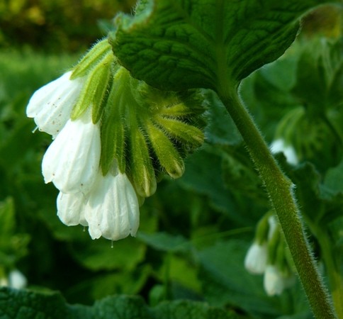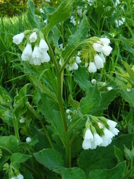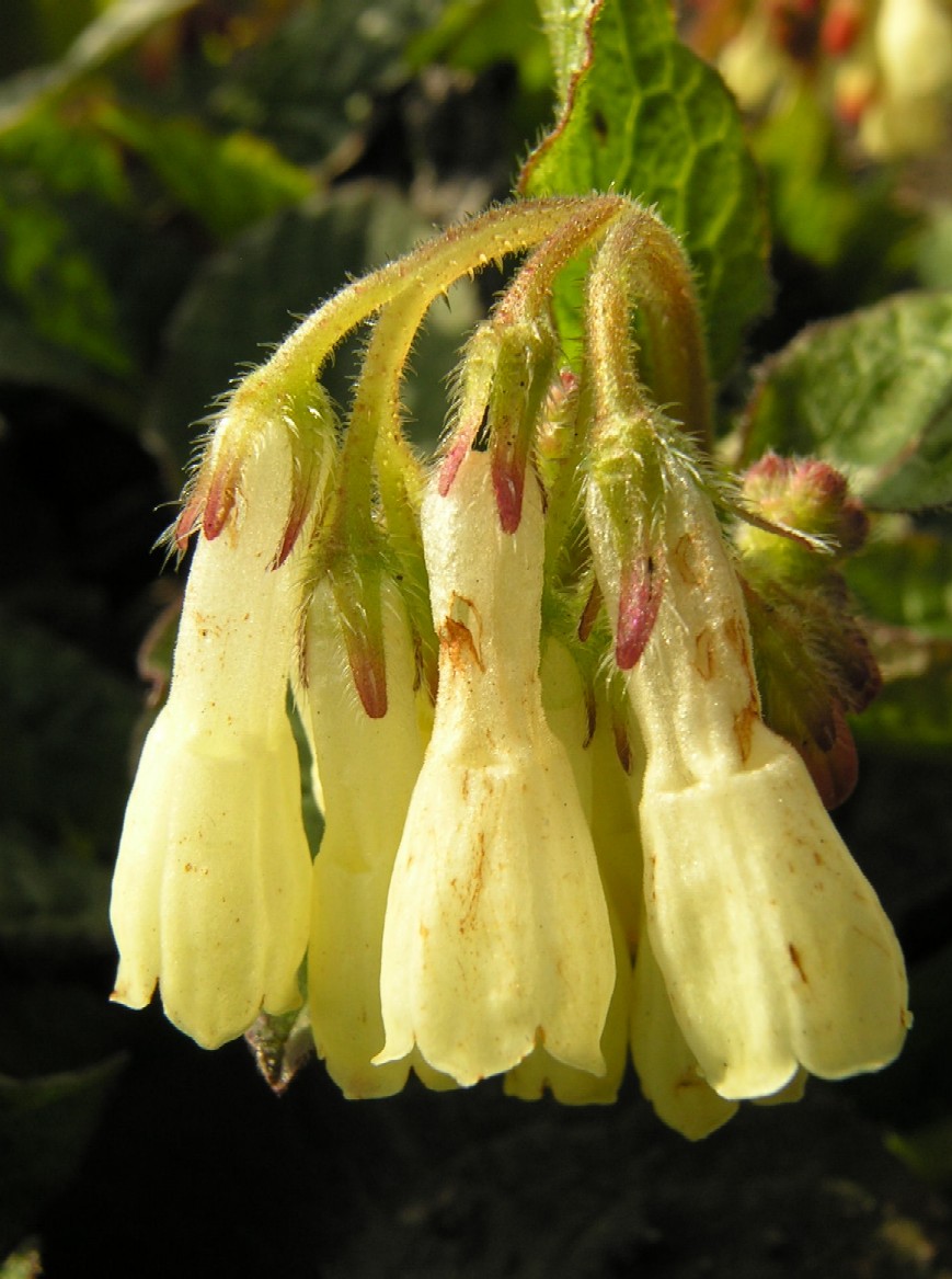 Symphytum- Blüten gelblich oder weiß, Schlundschuppen die Krone nicht überragend