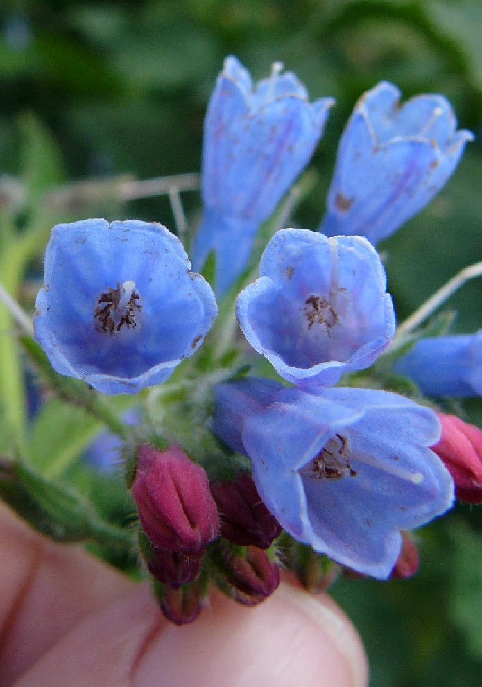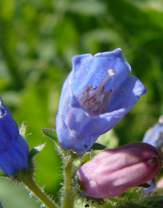 später himmelblau Krone innen mit drüsigen Kronschuppen Stängel mit stachligen Borsten Blätter eilänglich, borstig behaart Blätter nicht herablaufend