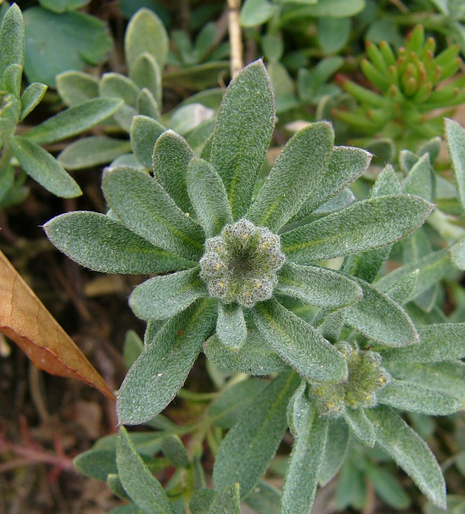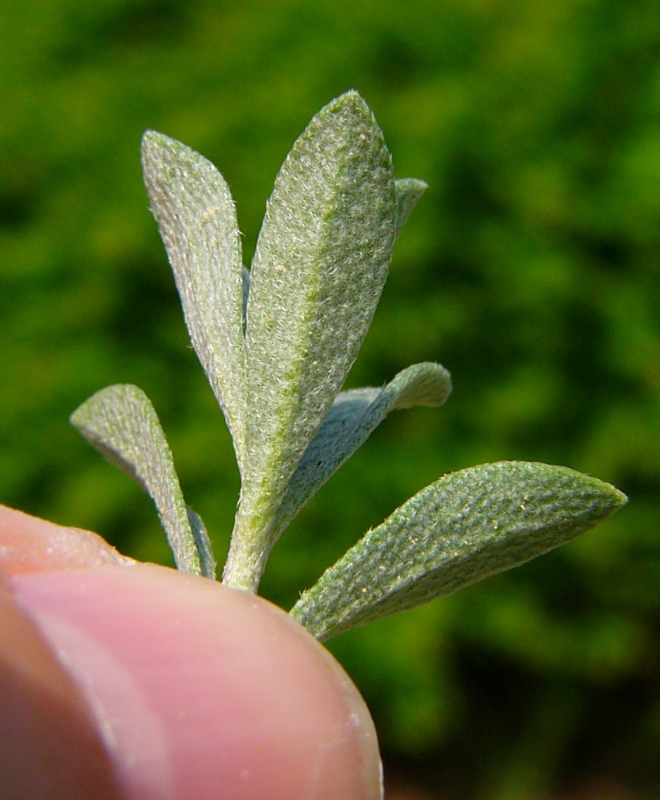 Blätter linealisch bis eiförmig, Unter- und Oberseite weiß durch dichte Sternbehaarung
