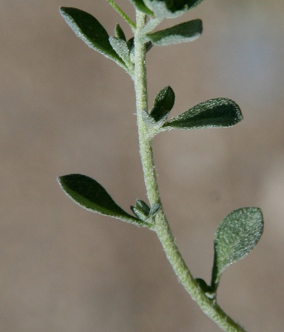 Blätter spatelförmig, 3 - 10 mm lang, mit stumpfer Spitze,