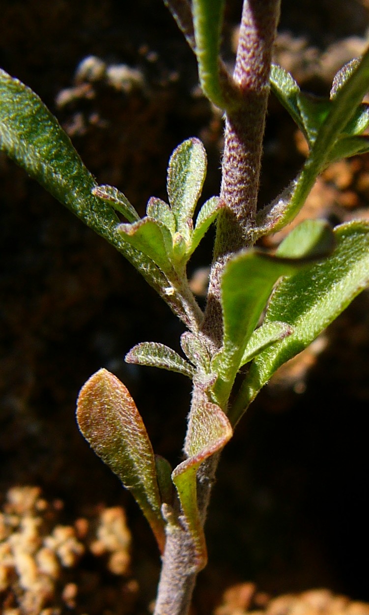 1 Blätter spatelförmig, 3 - 10 mm lang, beiderseits durch Sternhaare grau oder weiß