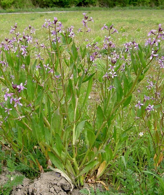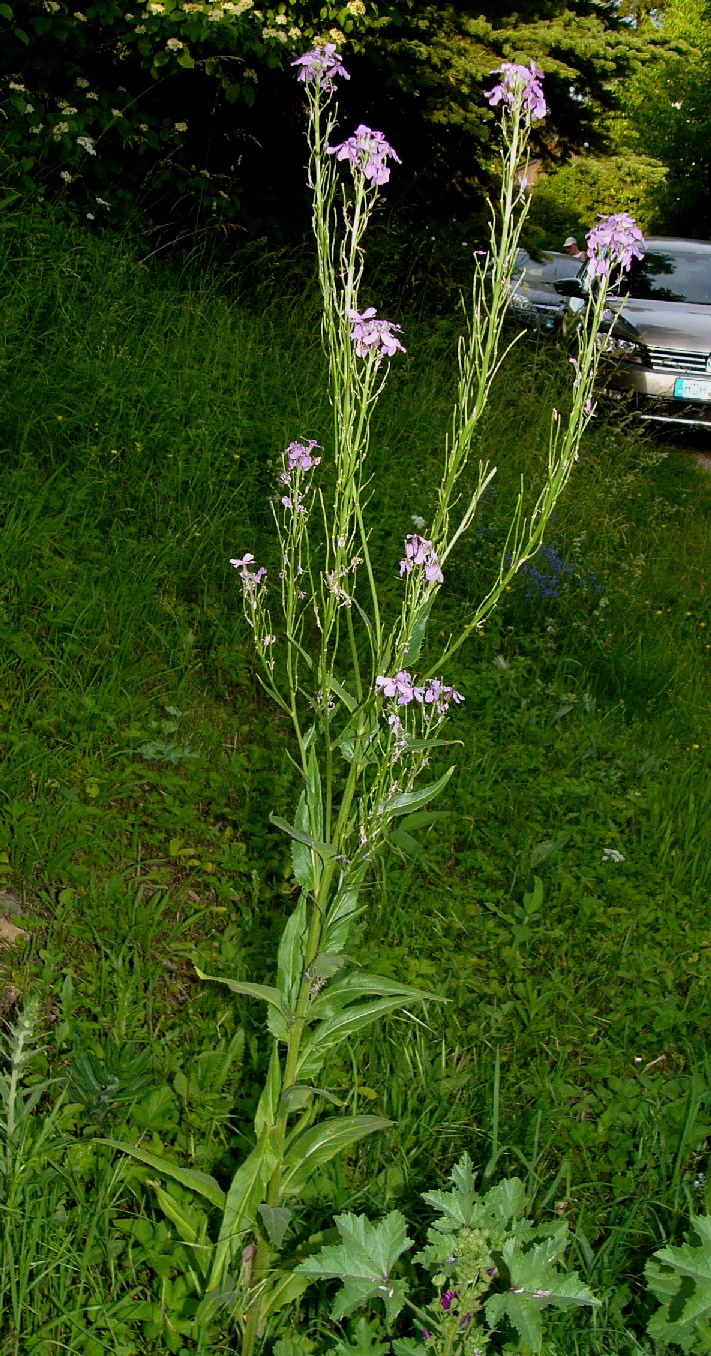 Pflanze aufrecht, 1 m hoch Blütenstand verzweigt, aus mehreren vielblütigen Trauben Kronblätter 18 - 25 mm lang Kelchblätter nicht verwachsen, meist behaart Schoten 4 - 10 cm lang, 2 mm breit Stängelblätter eiförmig, gezähnt, nach oben hin kleiner werdend