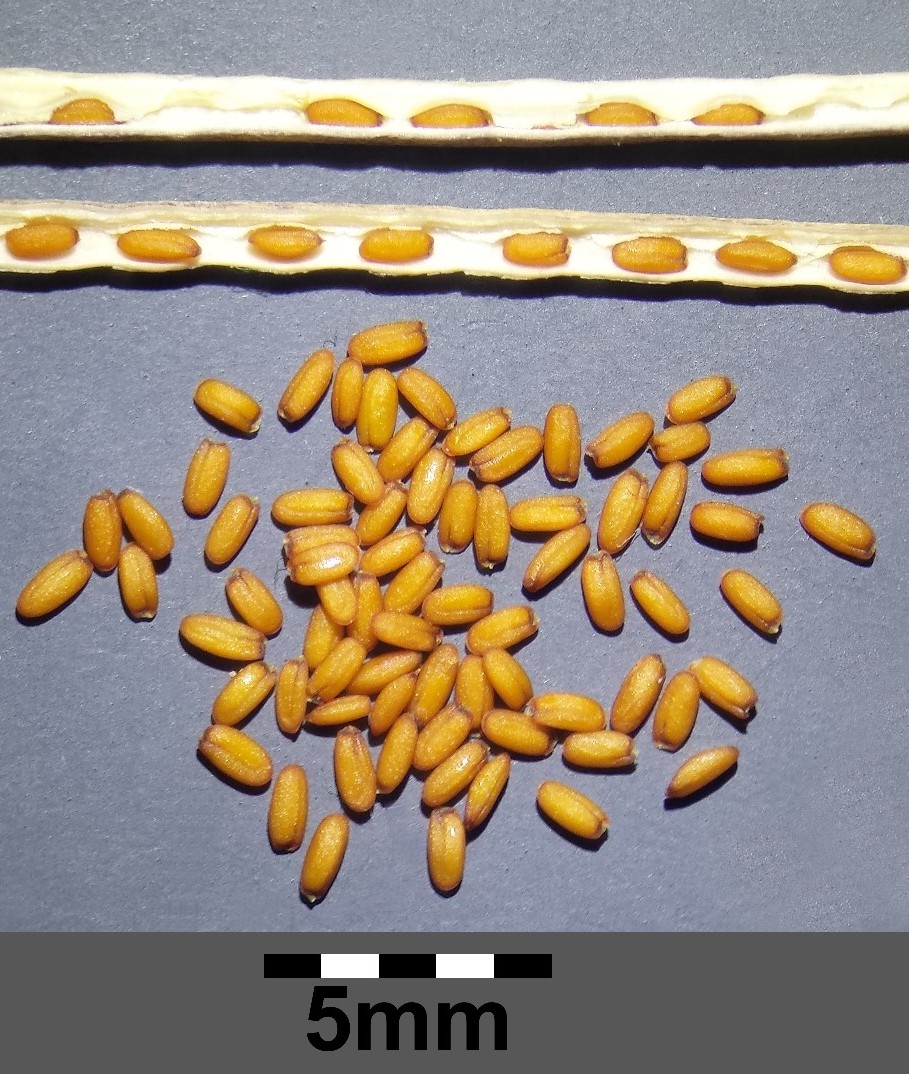 Schoten mit zahlreichen, meist ungeflügelten, 1,1 - 1,5 mm langen Samen