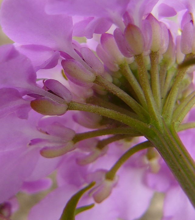 Iberis - Pflanze krautig, Blüten rosa, Fruchtstände doldig