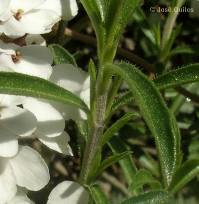 Iberis - Pflanze krautig, Blätter linealisch oder schmal lanzettlich, vorne spitz, ganzrandig, Blüten weiß