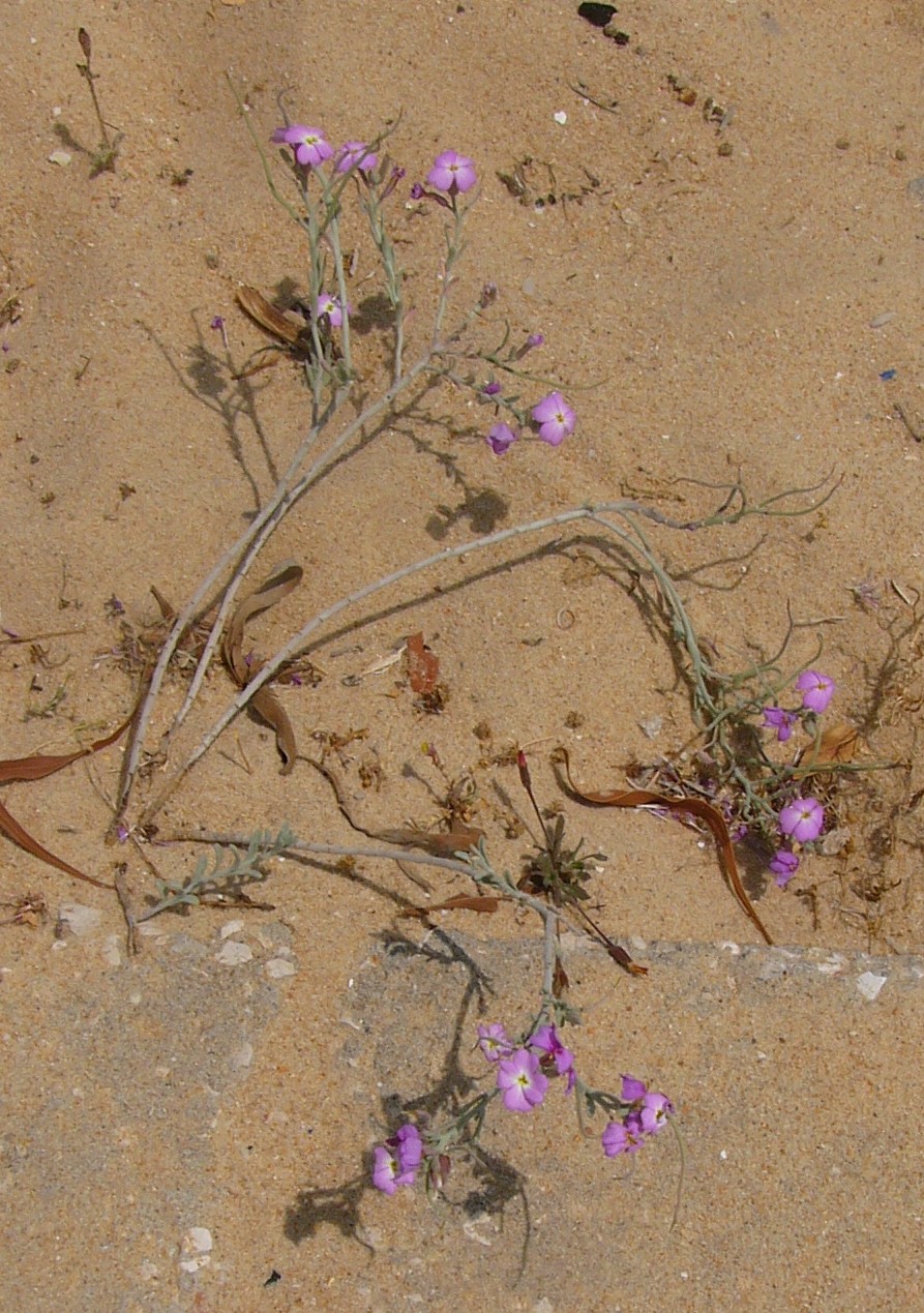 Malcolmia littorea (L.) W.T. Aiton (Küsten- Meerviole) V- VI, Sandstrände (0 - 600 m) Synonyme: English name: Nom francais: Nome italiano: Weltweite Verbreitung: Nach neuester Literatur wird die Pflanze jetzt Marcus-Kochia littorea (L.) Al-Shehbaz benannt.