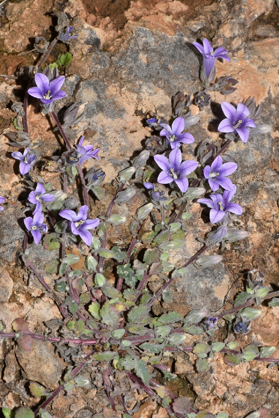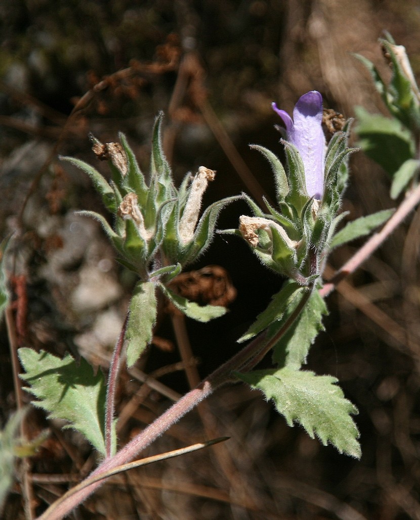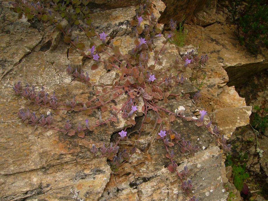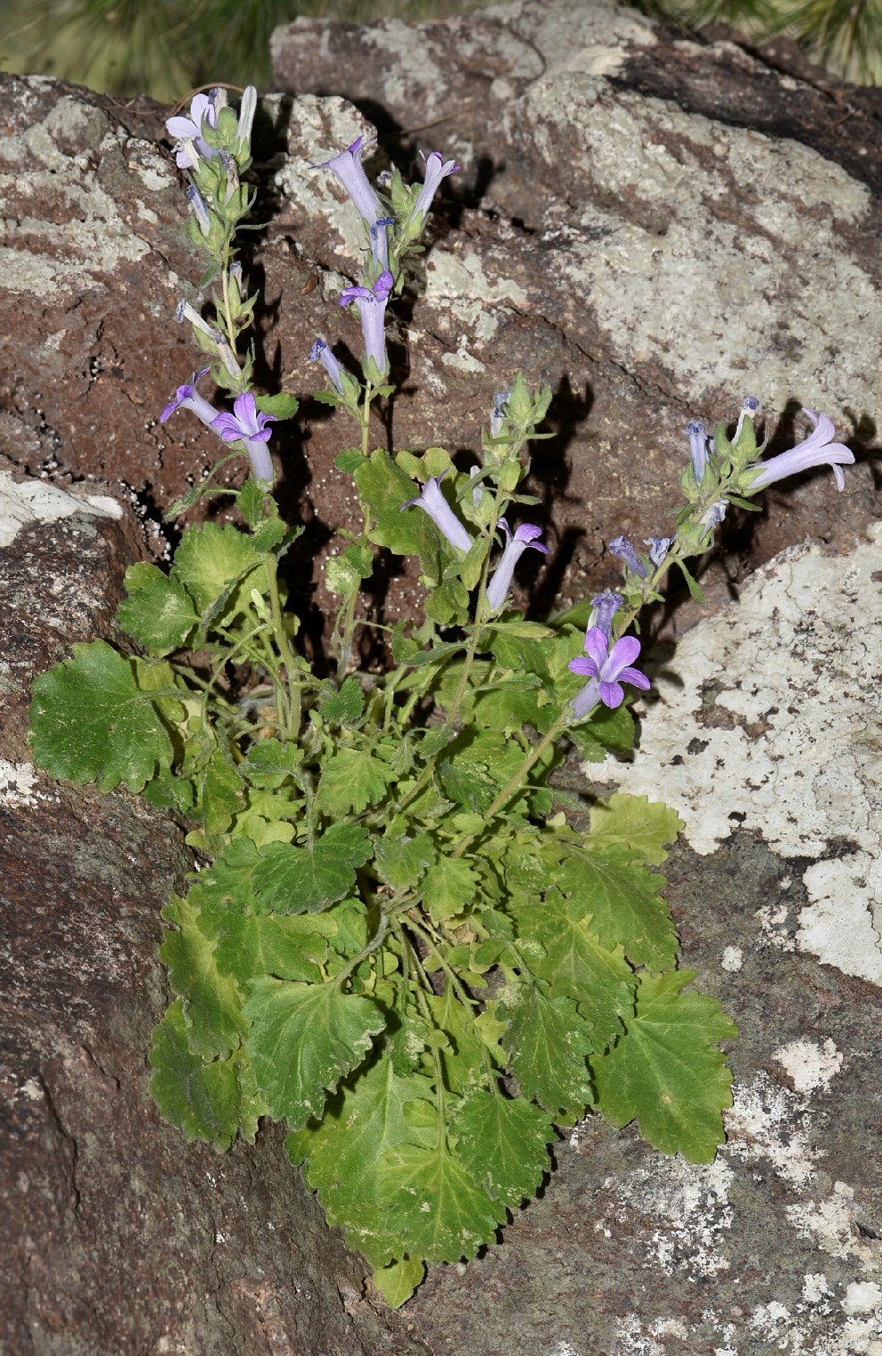 Pflanze 20 - 40 cm groß, an einer Felswand ausgebreitet, Blüten röhrig, 12 - 15 mm lang, innen blau, 5 Narben
