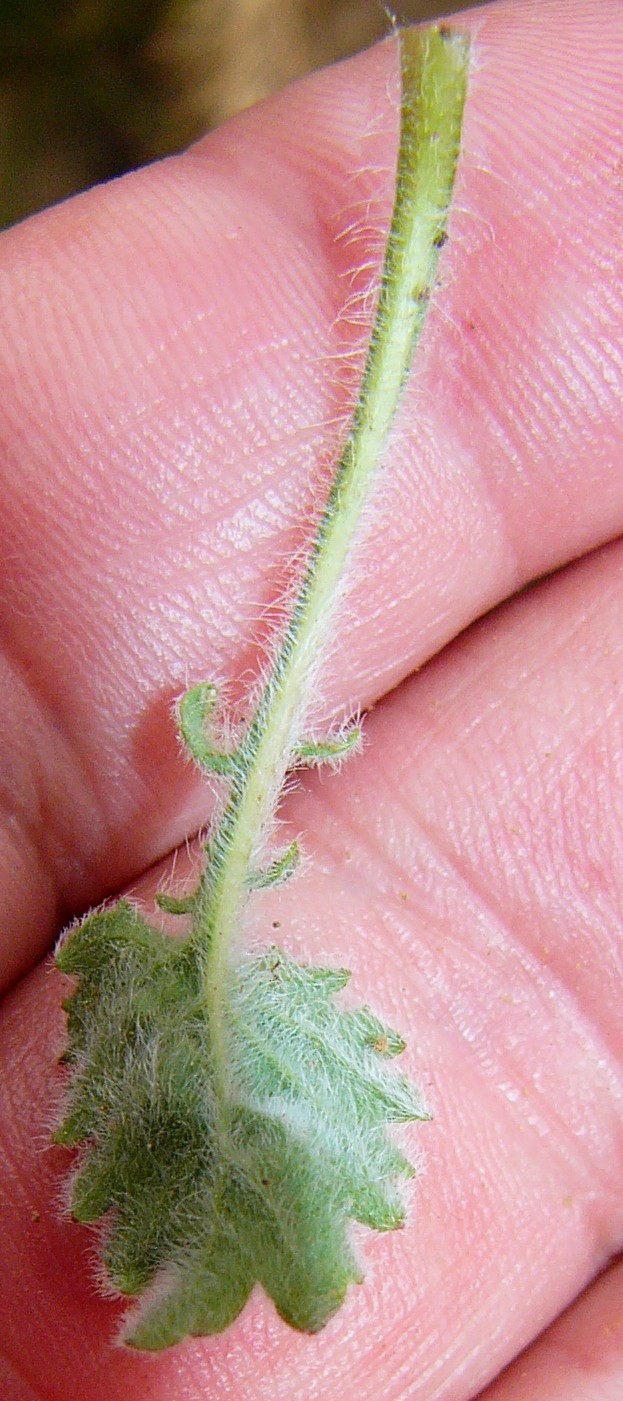 Grundblätter gelappt, bleibend dicht behaart, Blattstiel meist gelappt, Endlappen der Grundblätter z.T.