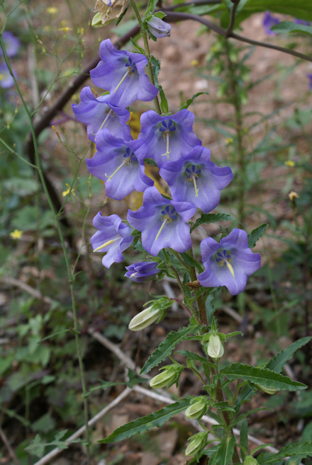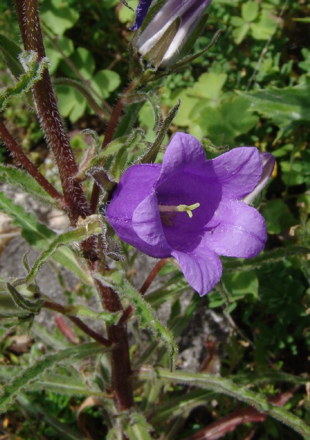 blau/violett, einzeln, in Rispen oder Trauben, Griffel mit 3 Narben, mittlere Stängelblätter