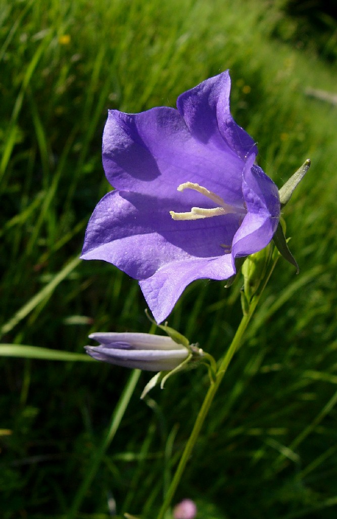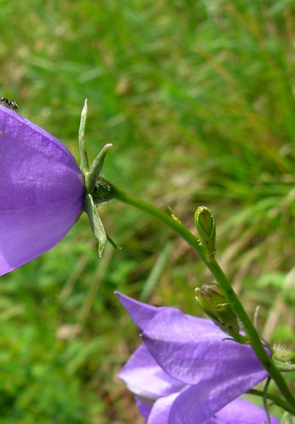 Campanula: Blüten blau/violett, 30 - 50 mm im Durchmesser, einzeln, in Rispen oder Trauben, 30 - 50 mm im Durchmesser, Griffel mit 3 Narben, obere Stängelblätter linealisch oder länglich, Kelchblätter breit, ohne Kelchblattanhängsel