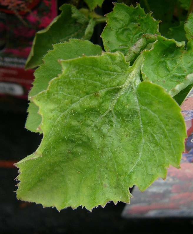 Stängelblätter rundlich bis dreieckig, unregelmäßig buchtig gezähnt, größer als die Grundblätter