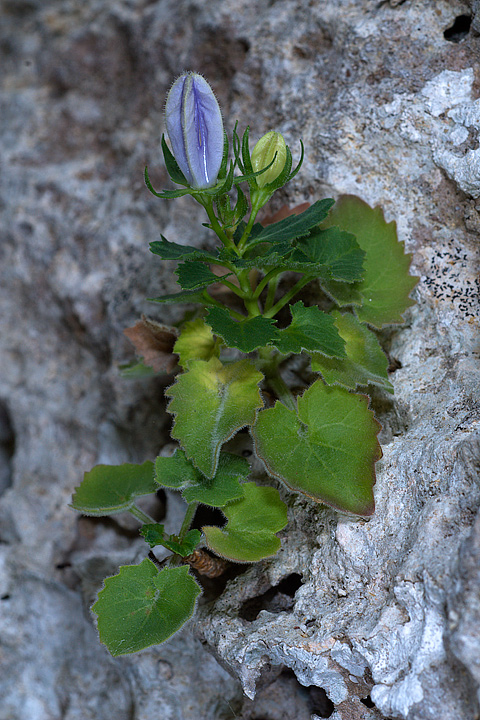 Grundblätter rundlich bis eiförmig, buchtig gezähnt, Blattstiele und Blattränder behaart oder kahl