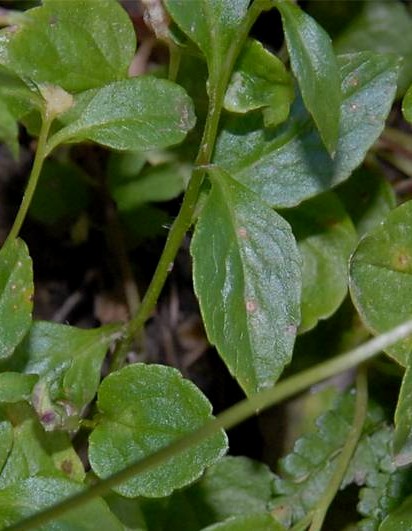 Blätter rundlich bis eiförmig, 6 - 12 mm, gezähnt,