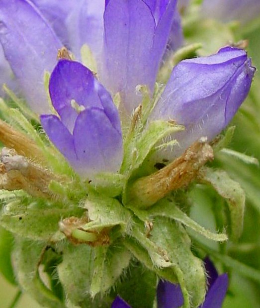 Pflanze 12 - 18 cm groß Blütenknäuel mit 4 - 6 Blüten Äußere Hochblätter ca. so lang wie die Blüten Knäuel mit 6 - 12 Blüten, Blüten ca. 3 cm lang Kelchblattzipfel breit dreieckig, so breit wie lang Fruchtknoten behaart Stängel unverzweigt, +/- kahl Grundblätter linealisch, bewimpert