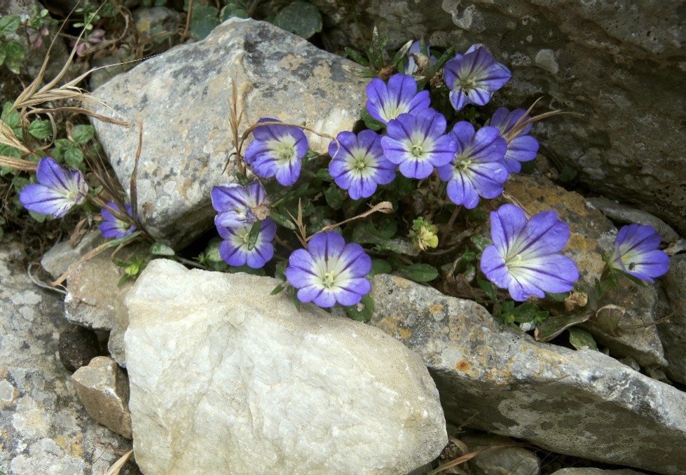 3 Endemit der Kykladeninseln Amorgos, Astipalea, Levitha, Ofidoussa, Sirina, Blüten im äußeren Teil himmelblau, mit großem weißen Zentrum