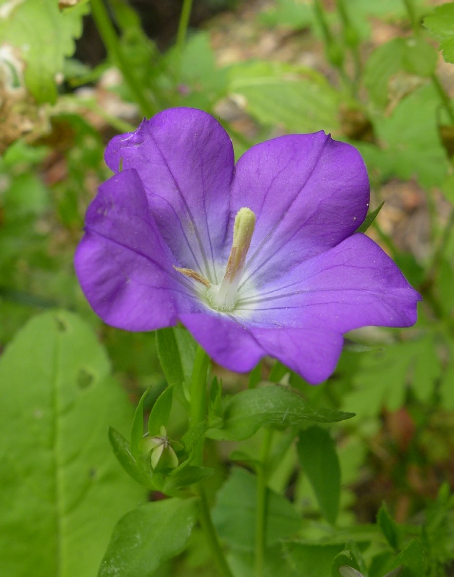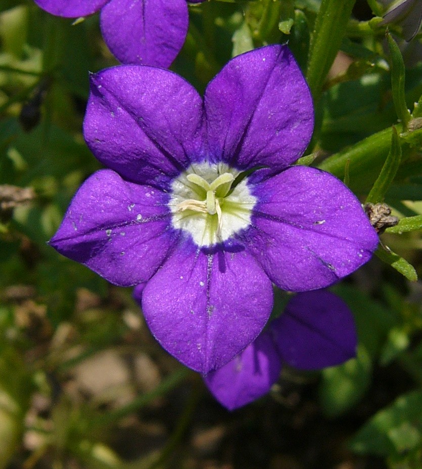 Blüten breit glockig, im äußeren Teil himmelblau, mit großem weißen Zentrum, Blütendurchmesser 20 - 30 mm,Kelchzipfel abstehend, schmal linealisch, meist kürzer wie die Krone