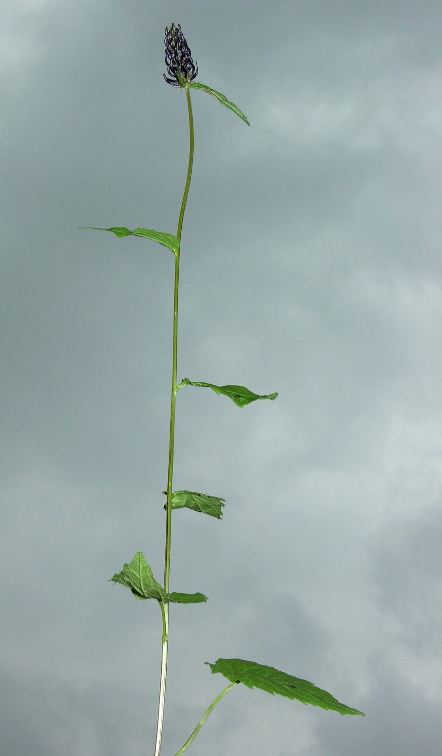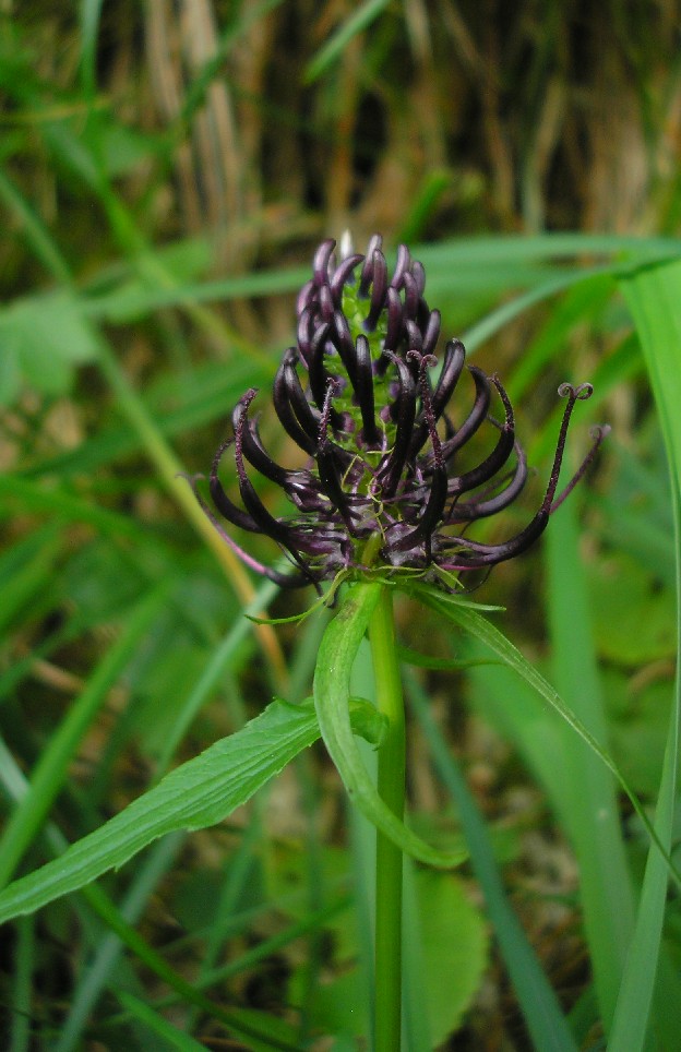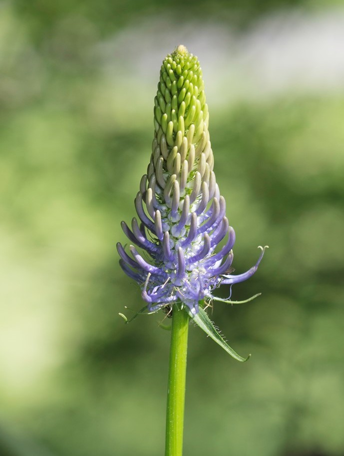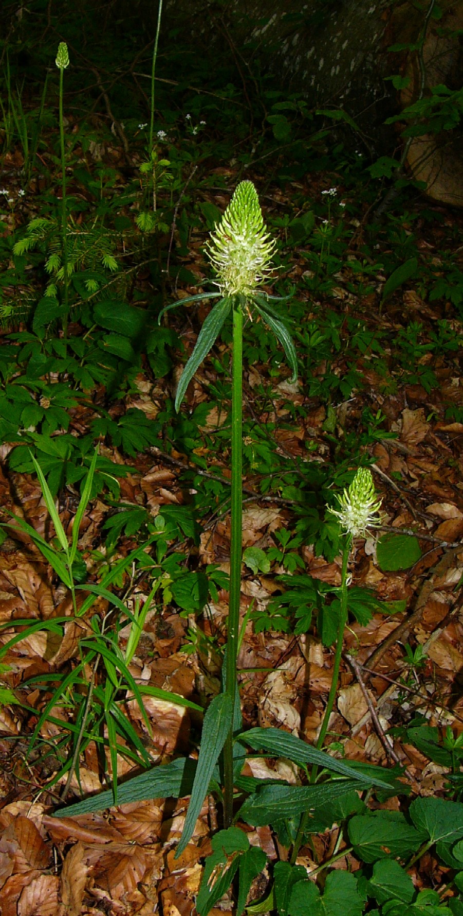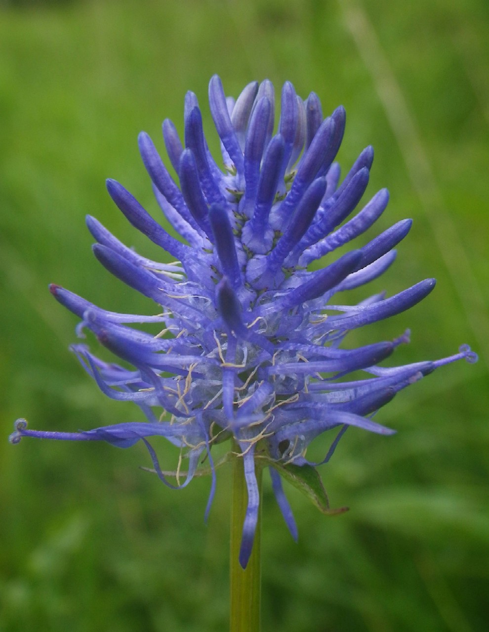 Phyteuma -Blütenstand länglich oder eiförmig, Köpfchen mit deutlichem Tragblatt, Blütenknospen gebogen
