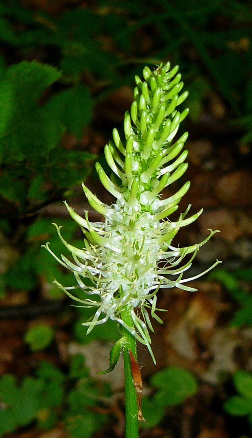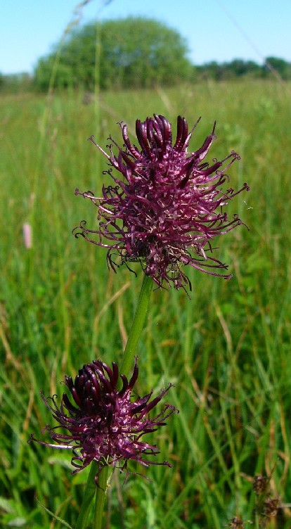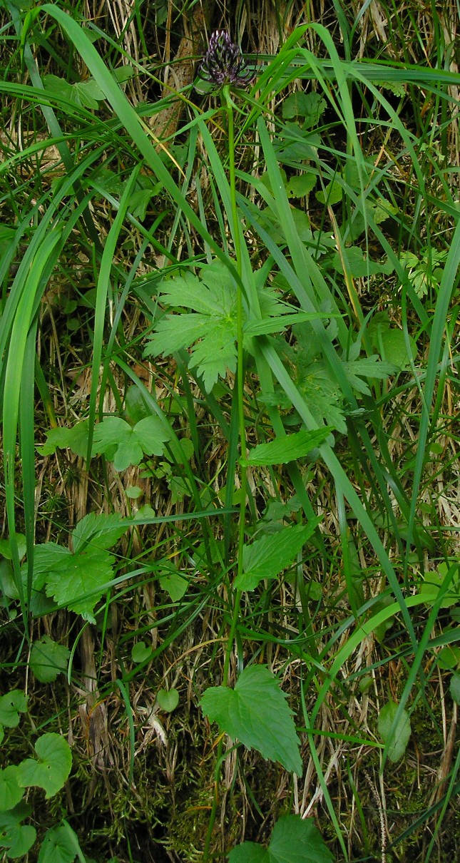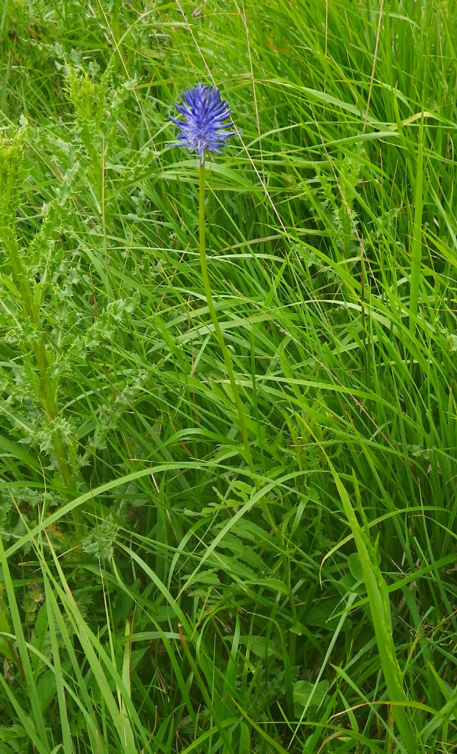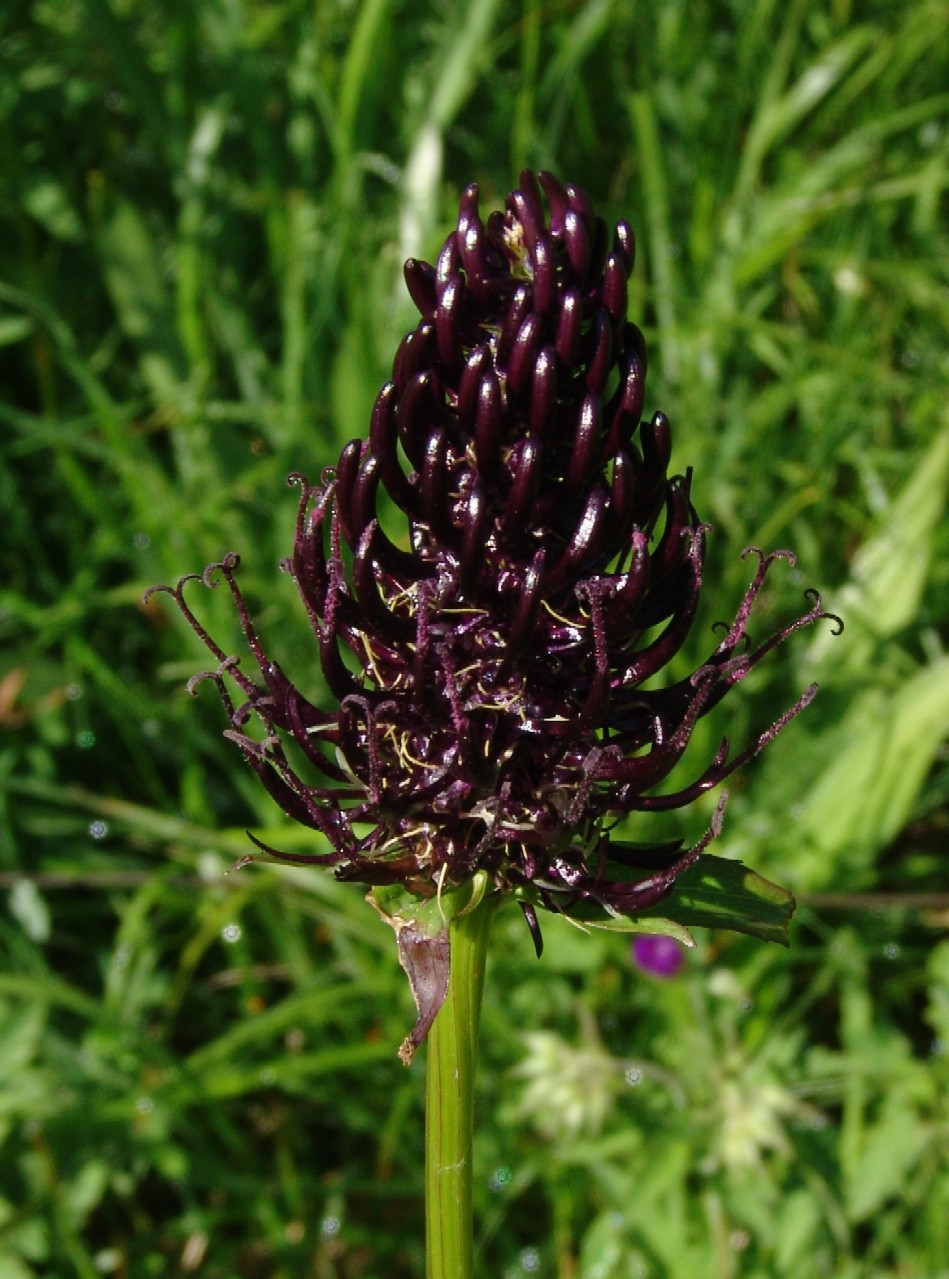 Phyteuma -Blütenstand länglich oder eiförmig, Köpfchen mit deutlichem Tragblatt, Blütenknospen gebogen